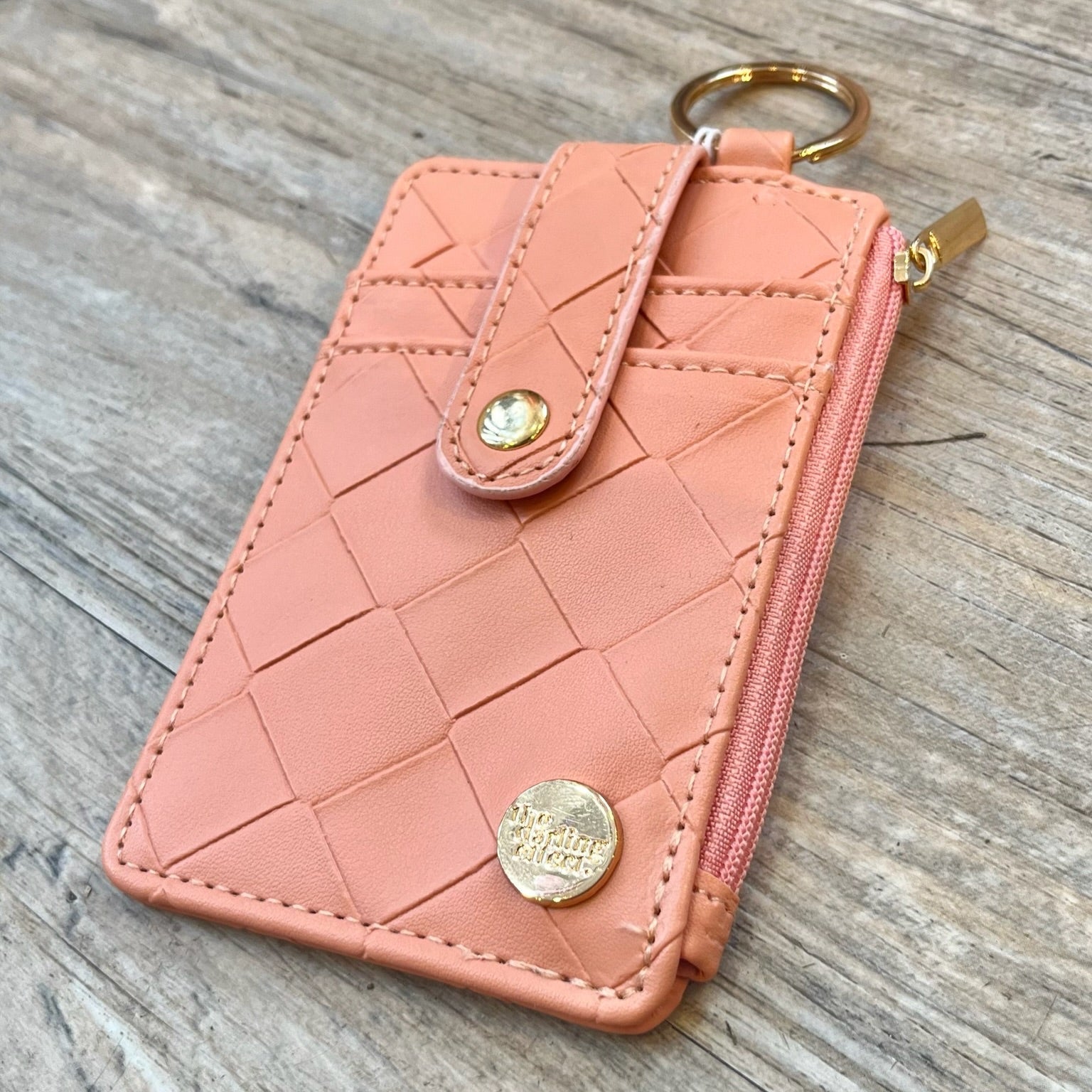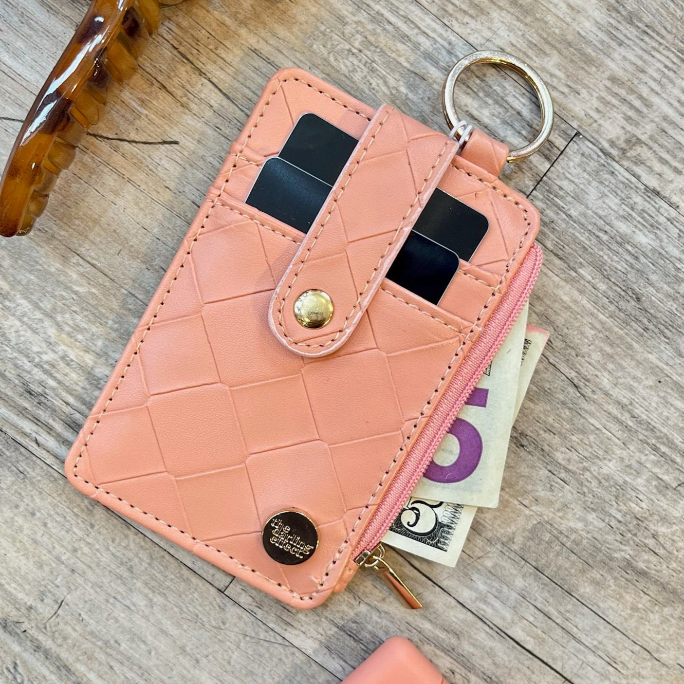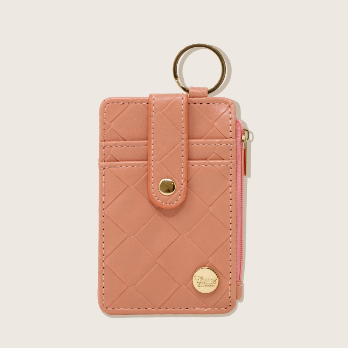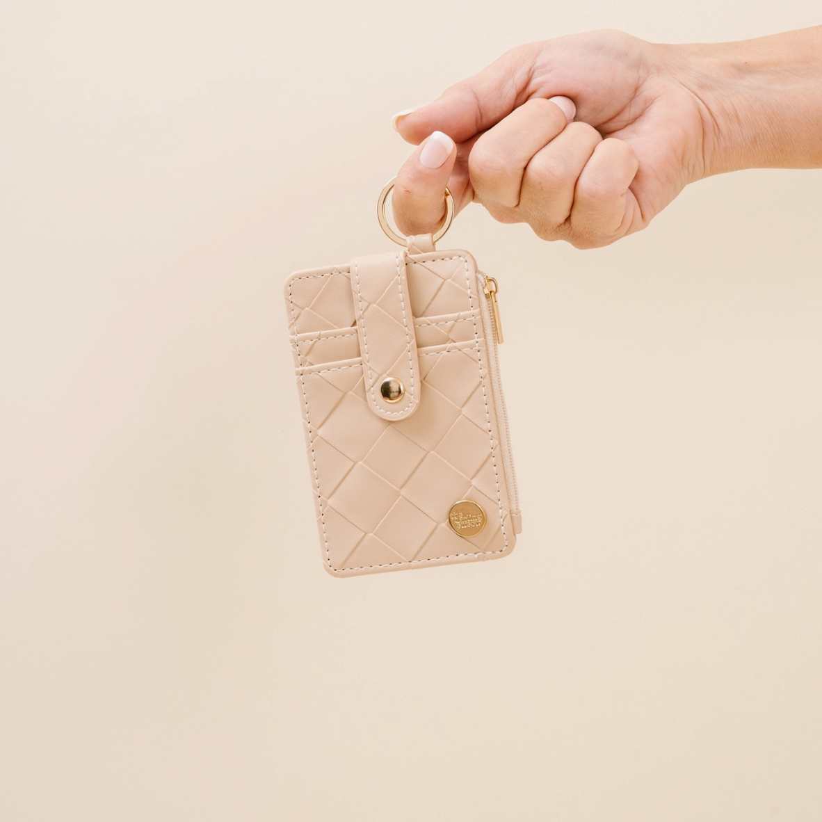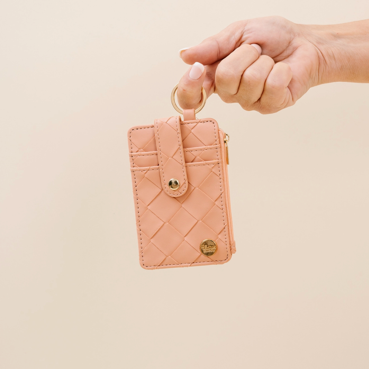 - Our solid colored woven keychain card wallet is the perfect accessory to match your wristlet or belt bag!