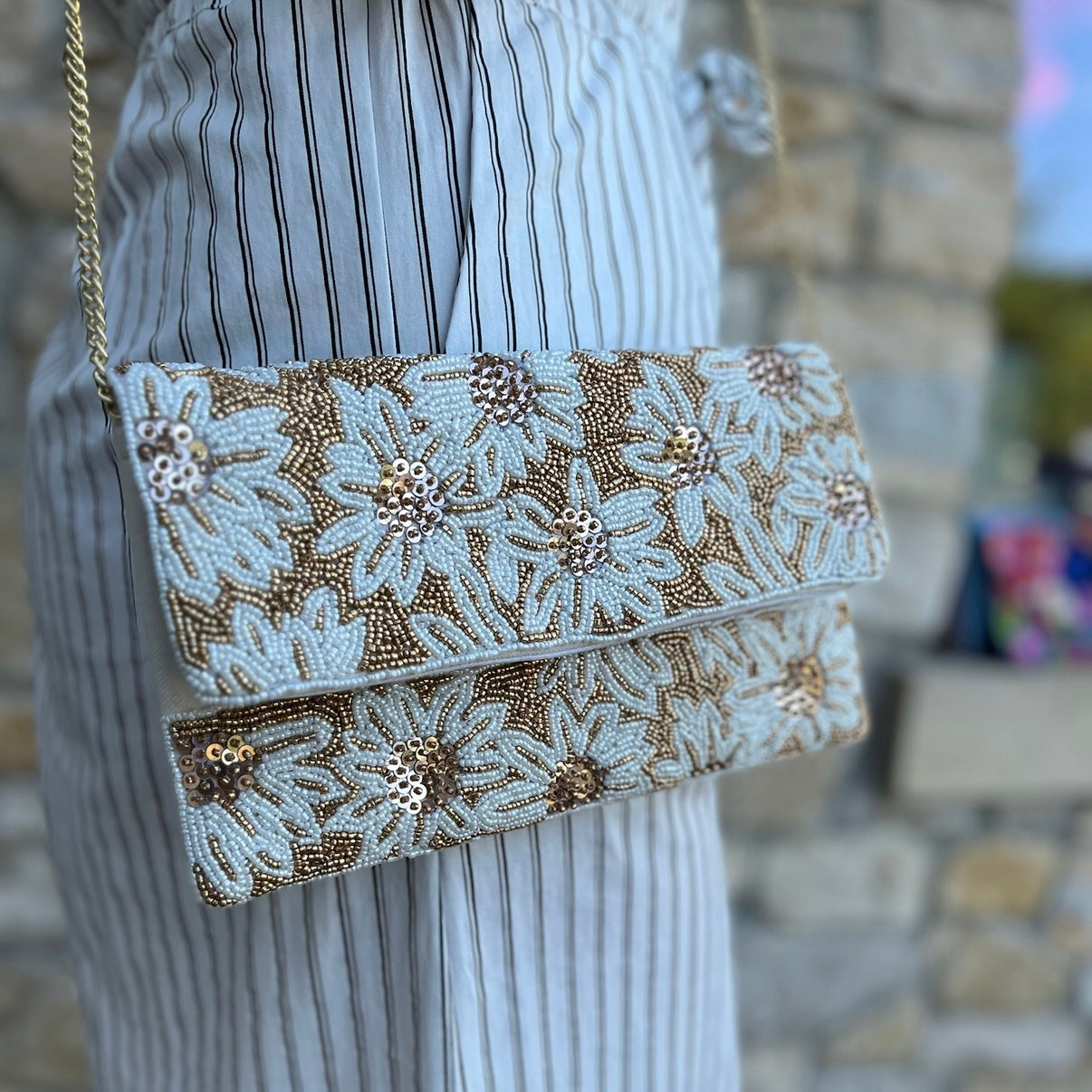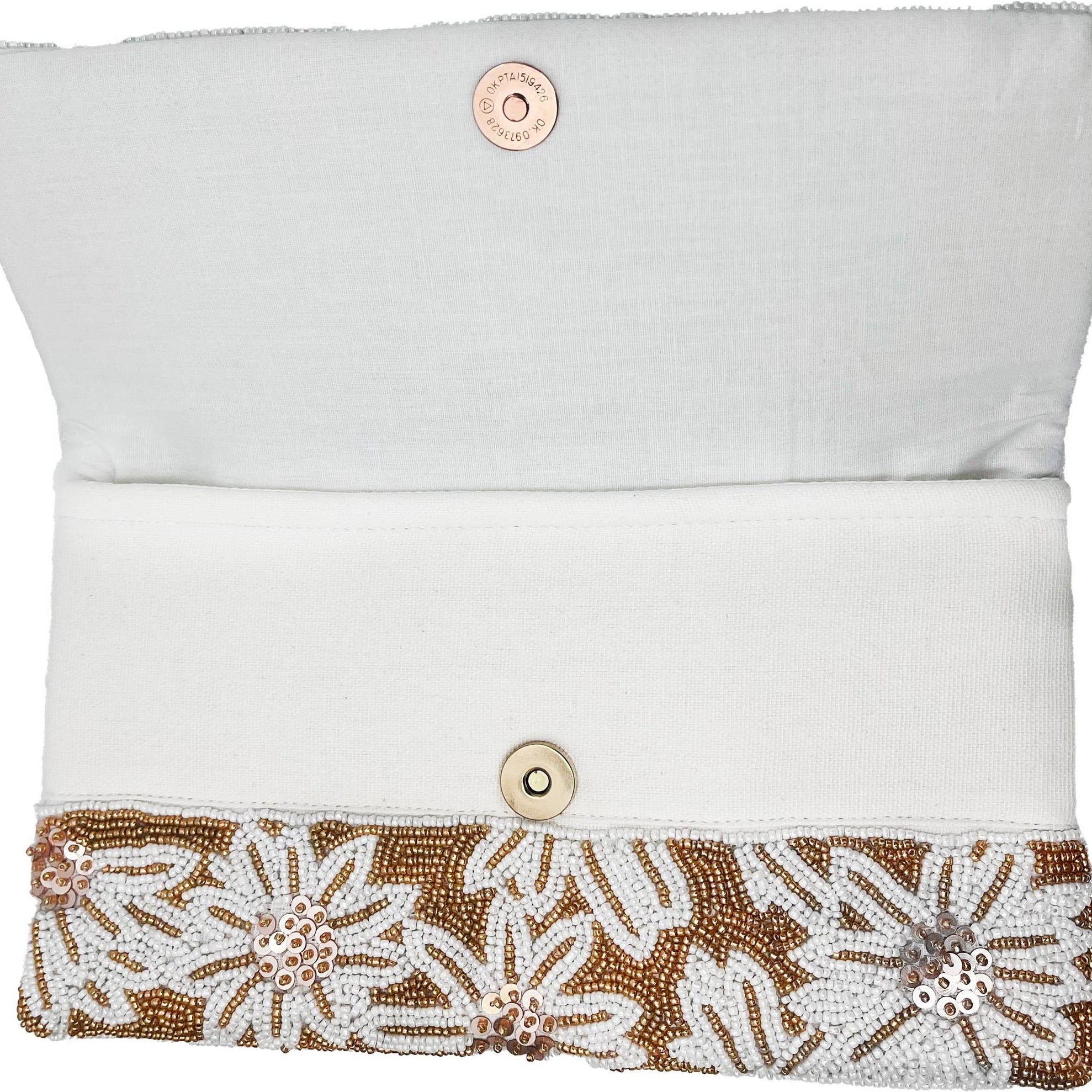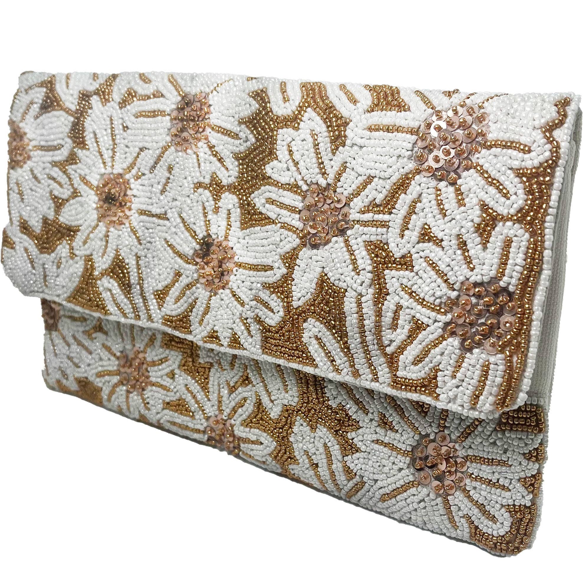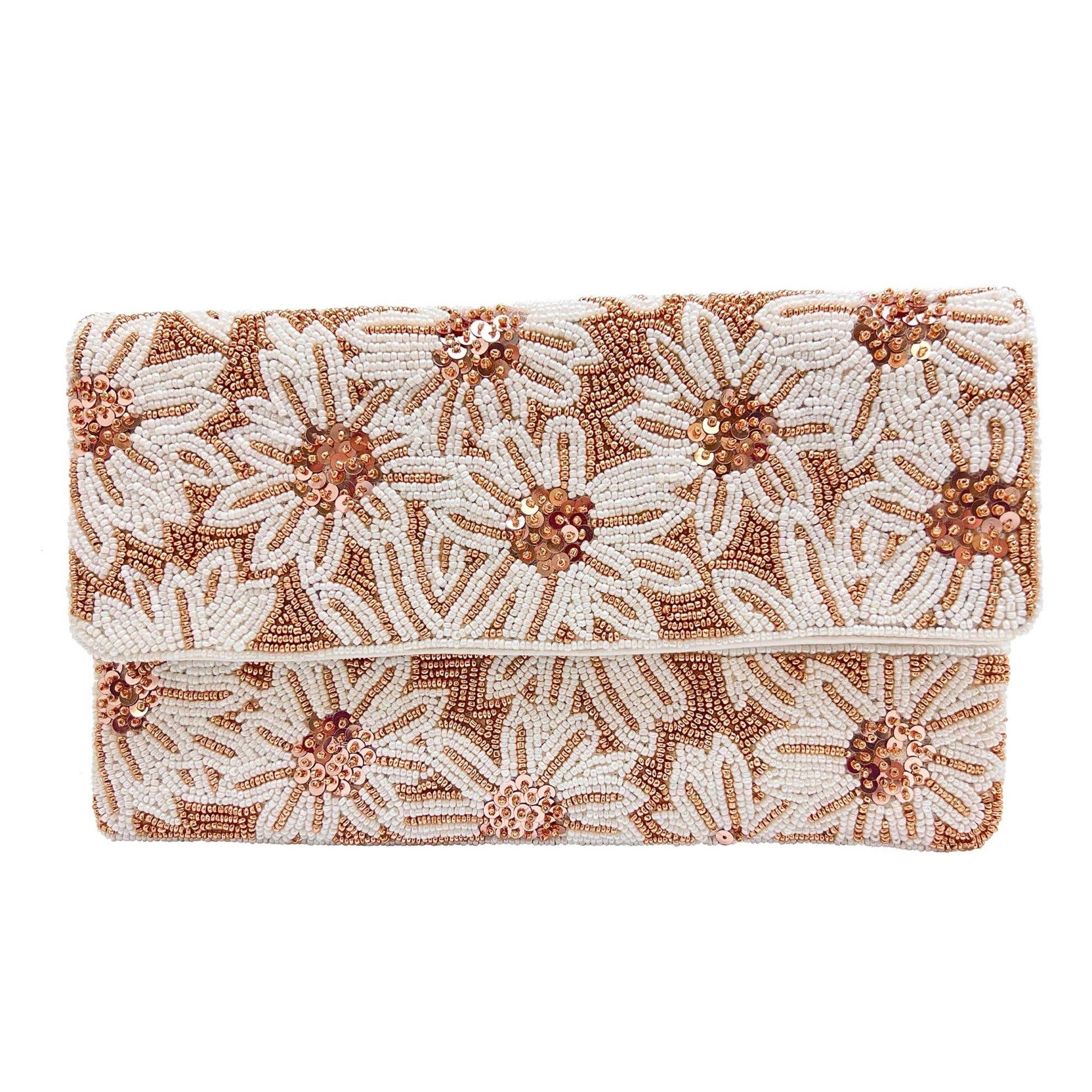 Glimmer Pop Floral Rose Gold Beaded Clutch Bag