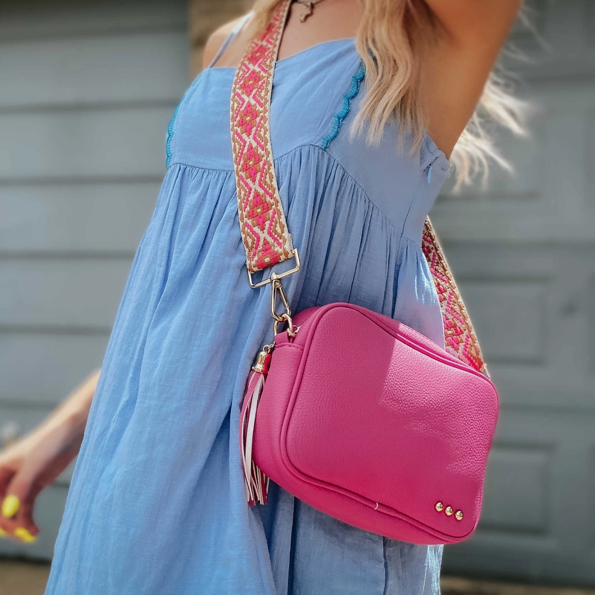 - Comes with a trendy & fun canvas strap & shiny gold classic hardware