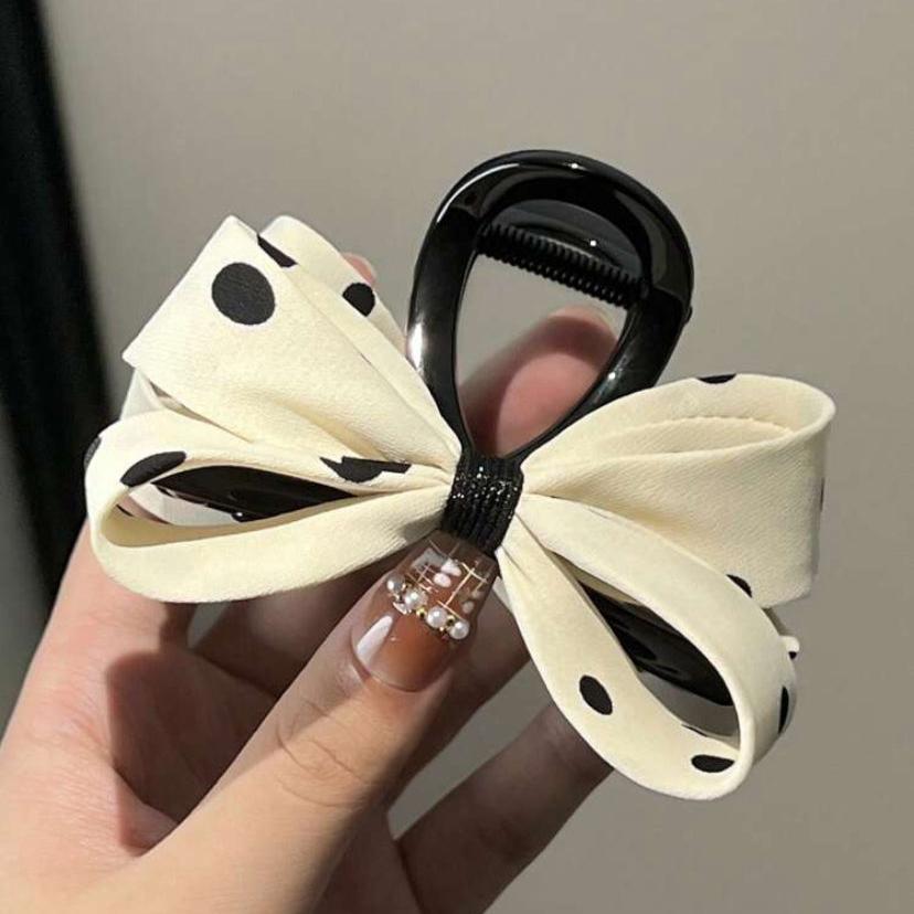 Polka Princess Ivory Patterned Bow Claw Clip