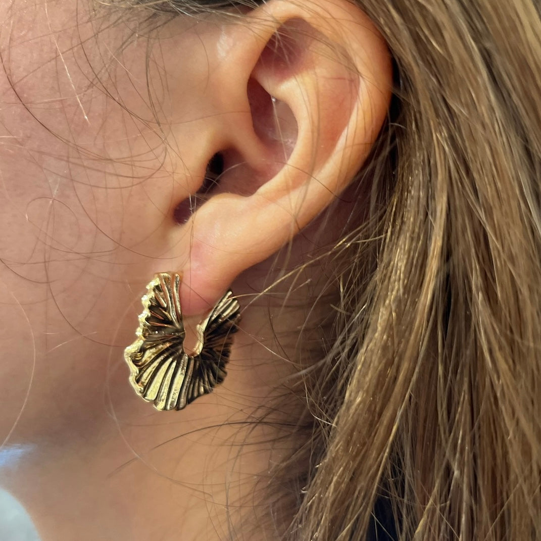 Our Sun Beams Hoop Earrings are your daily dose of sunshine. Featuring a radiant design that mimics the glow of golden rays, these hoops add warmth, shine, and a touch of bold beauty to any look.
