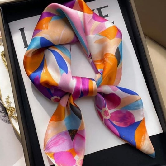 All Over Multi Patterned Satin Scarf