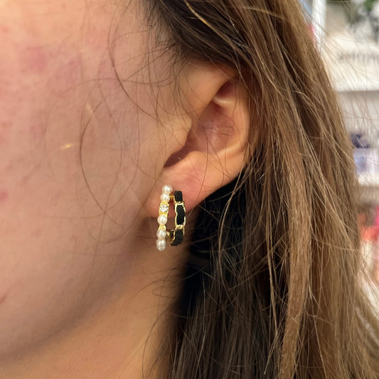 Monroe Double Hoop Pearl and Black Earring