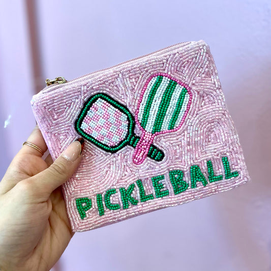 Pickleball & Paddles Beaded Zip Pouch
