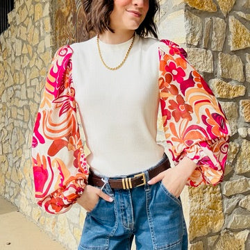 Aelin Printed Sleeve Ribbed Sweater Top