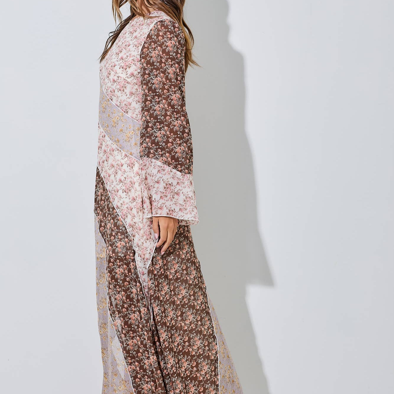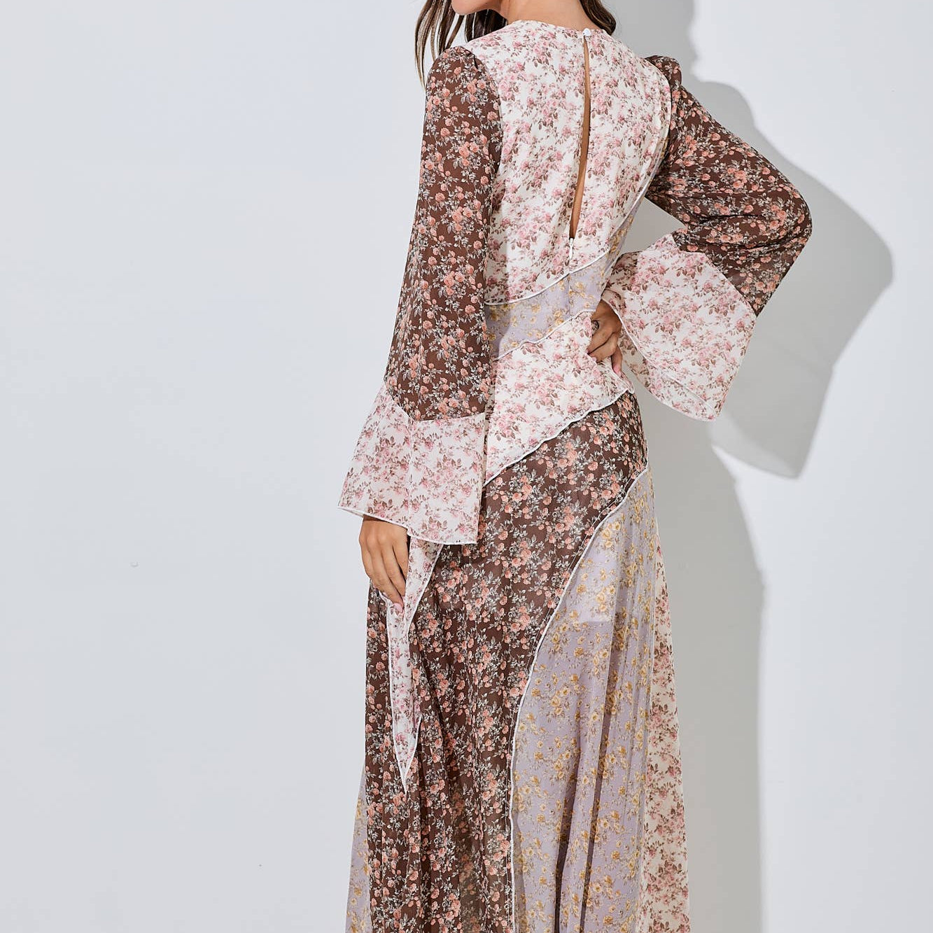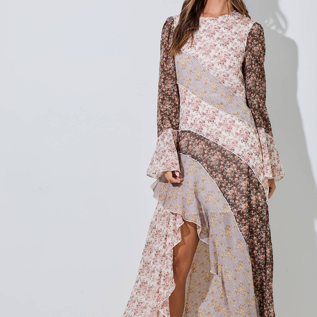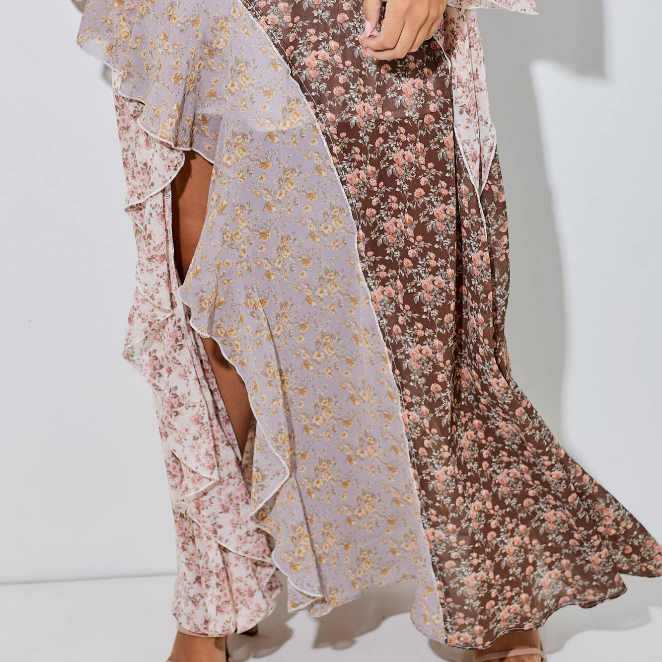 One dress really can do it all! A fun, floral pattern with some contrasting colors in a colorblock stripe design- pair it will the ruffled slit and you have a masterpiece of an outfit!