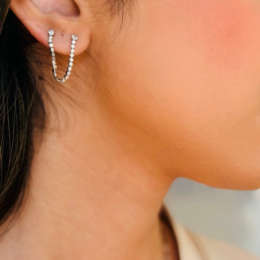 - Double stud with dainty chain linking them