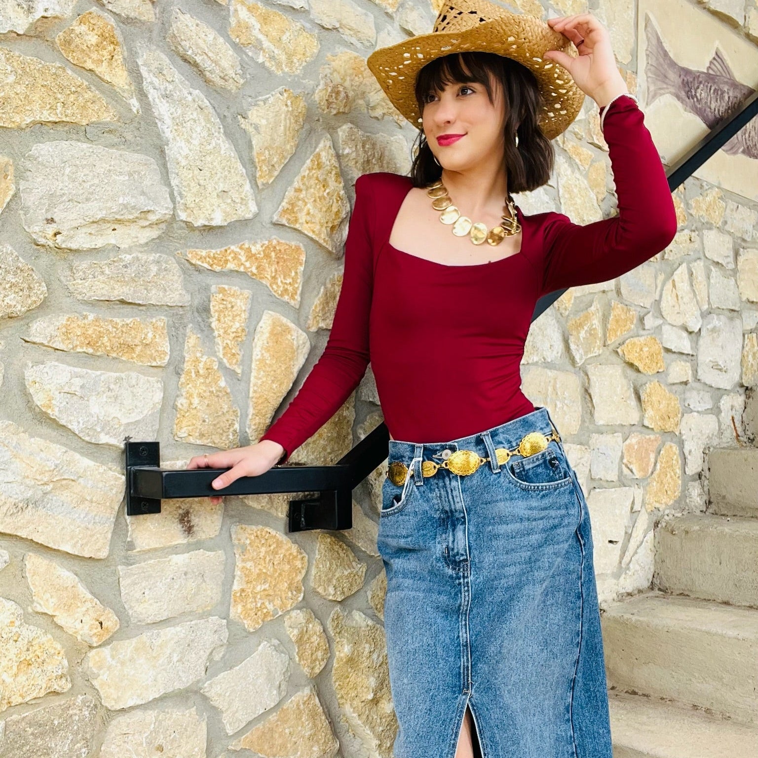 Discover the perfect addition to your wardrobe with our long sleeve square neck body suit! Made with soft and stretchy fabric, it hugs your curves and accentuates your figure. Versatile and stylish, it can be dressed up or down for any occasion!