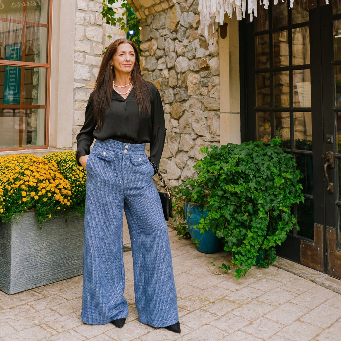 • Elevate your style with our tweed pants - the perfect blend of sophistication and trend. Featuring a flattering tailored fit and classic tweed texture, these pants bring effortless polish to any look. Pair them with a sleek blouse or cozy sweater for a timeless, boutique-chic outfit. Perfect for workdays, brunch, or a night out in style.