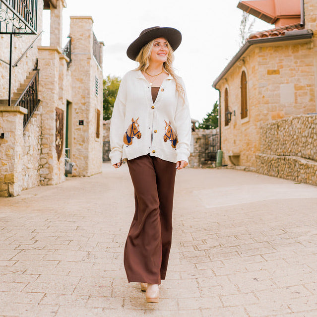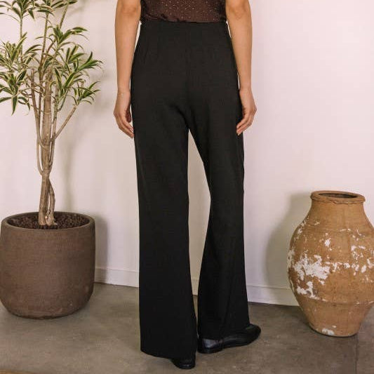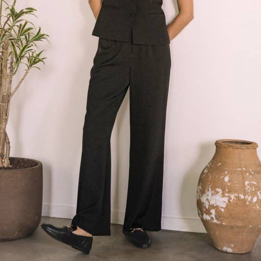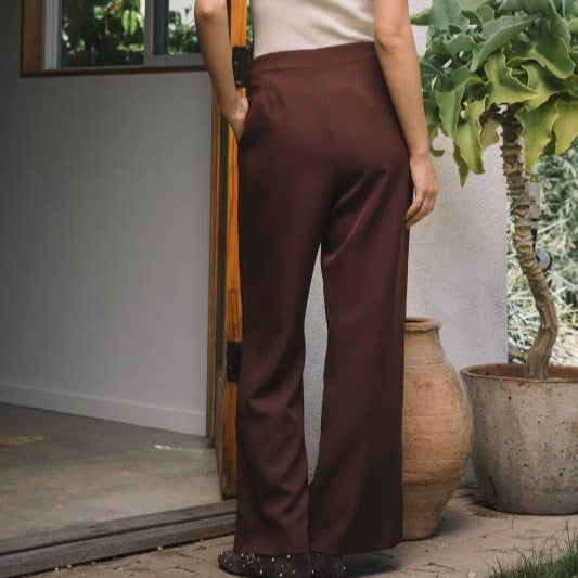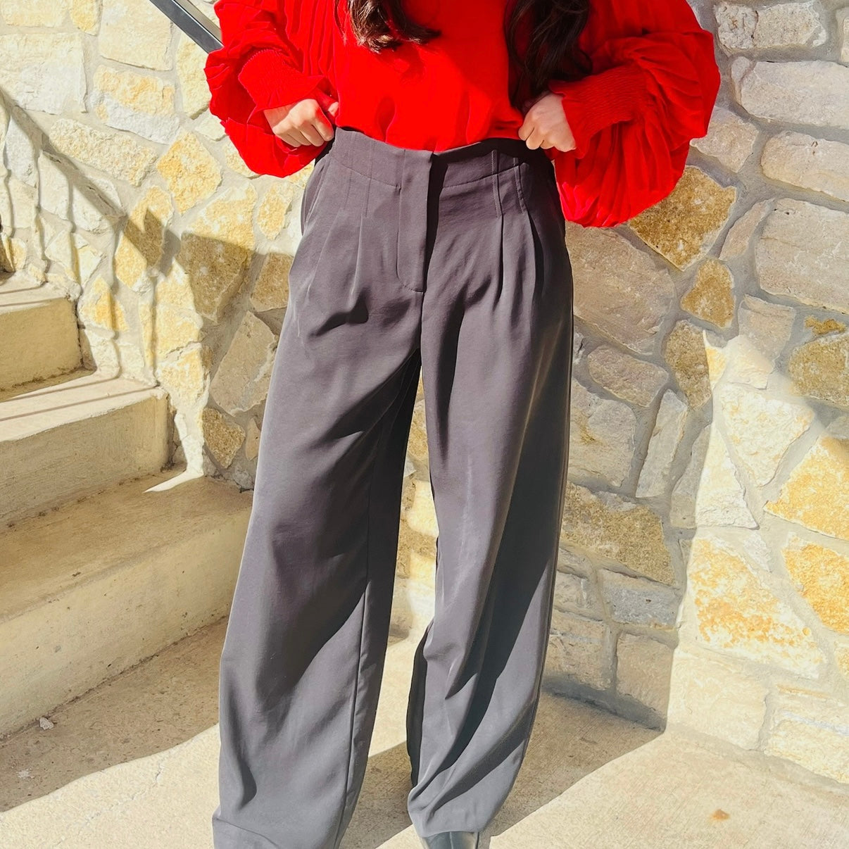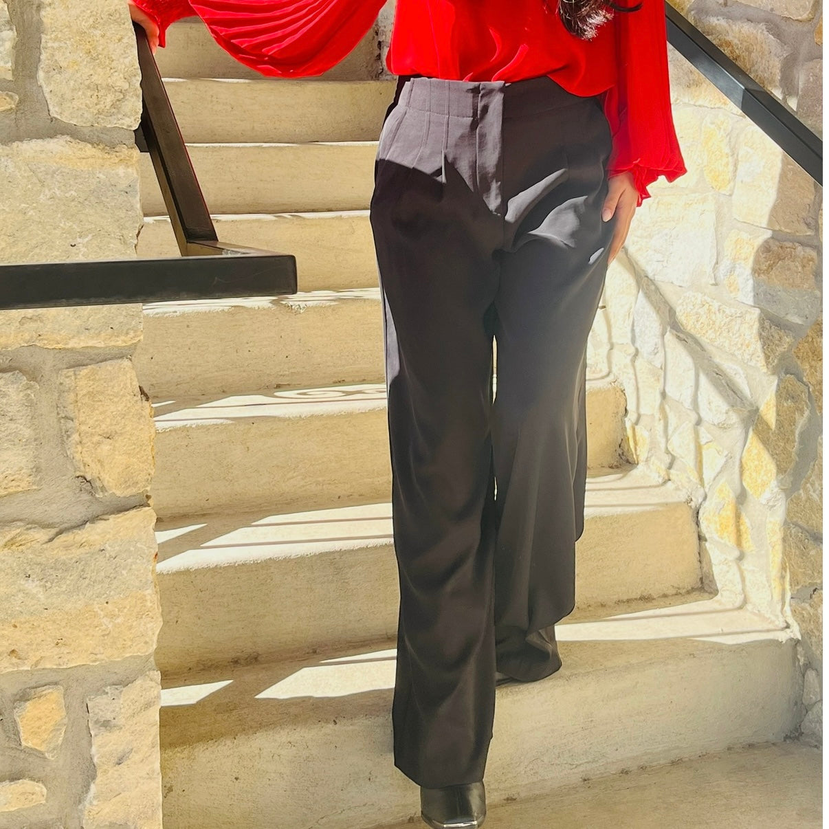 - Step into your power with these trousers: sleek, confident, and made to command attention. These high-waisted, full-length trousers feature a straight-leg silhouette in a solid color for a timeless, tailored look. Whether you're heading to the office, leading a meeting, or dressing to impress, this no-pocket design keeps things polished and minimal. From our bestselling brand Skies Are Blue, these are the elevated staple your closet has been waiting for.