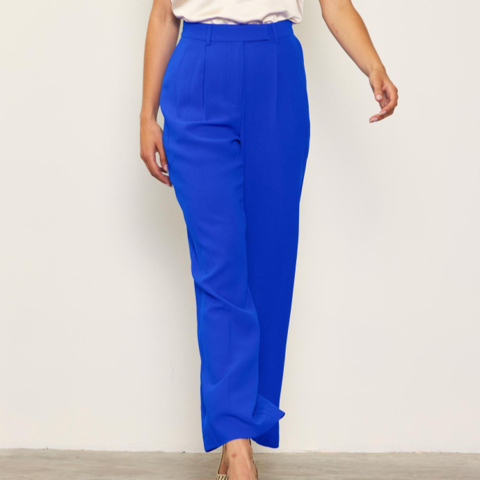 - These full-length trousers are the definition of timeless style and comfort. Featuring a flattering high-rise fit, sleek front pleats, and a classic straight leg, they’re a go-to piece for any working wardrobe. The lightweight, breathable fabric keeps you comfortable from desk to dinner, while the clean silhouette - no belt loops, just streamlined sophistication - makes styling a breeze. With functional pockets and a tailored finish, these trousers are a closet essential you'll reach for on repeat.