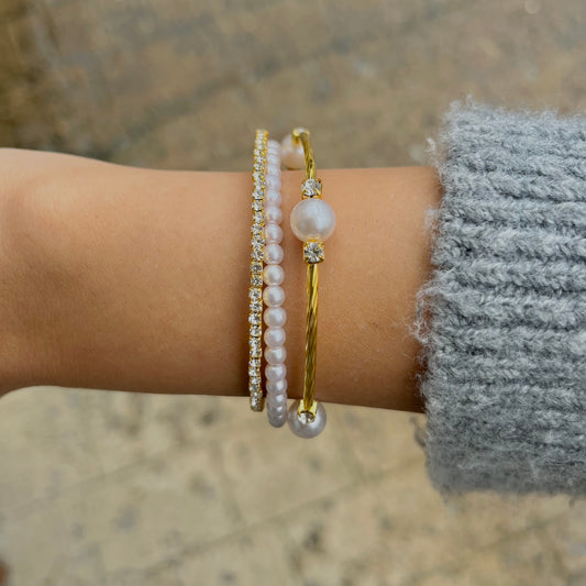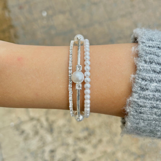 Princess in Pearls Elastic Pearl & Rhinestone Bracelet