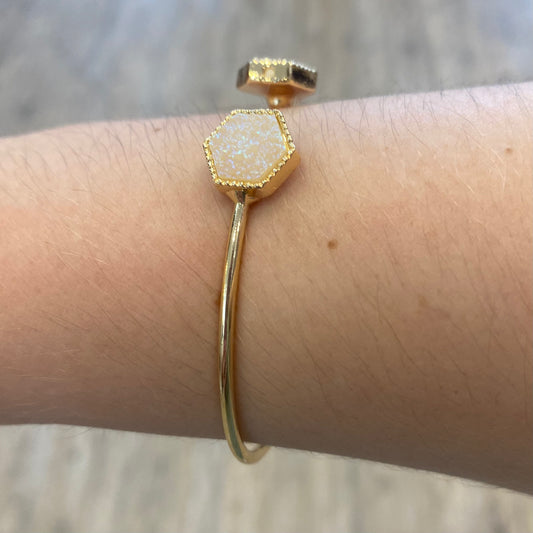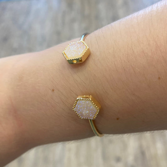 Avalynn White Druzy Stone Gold Bracelet Cuff