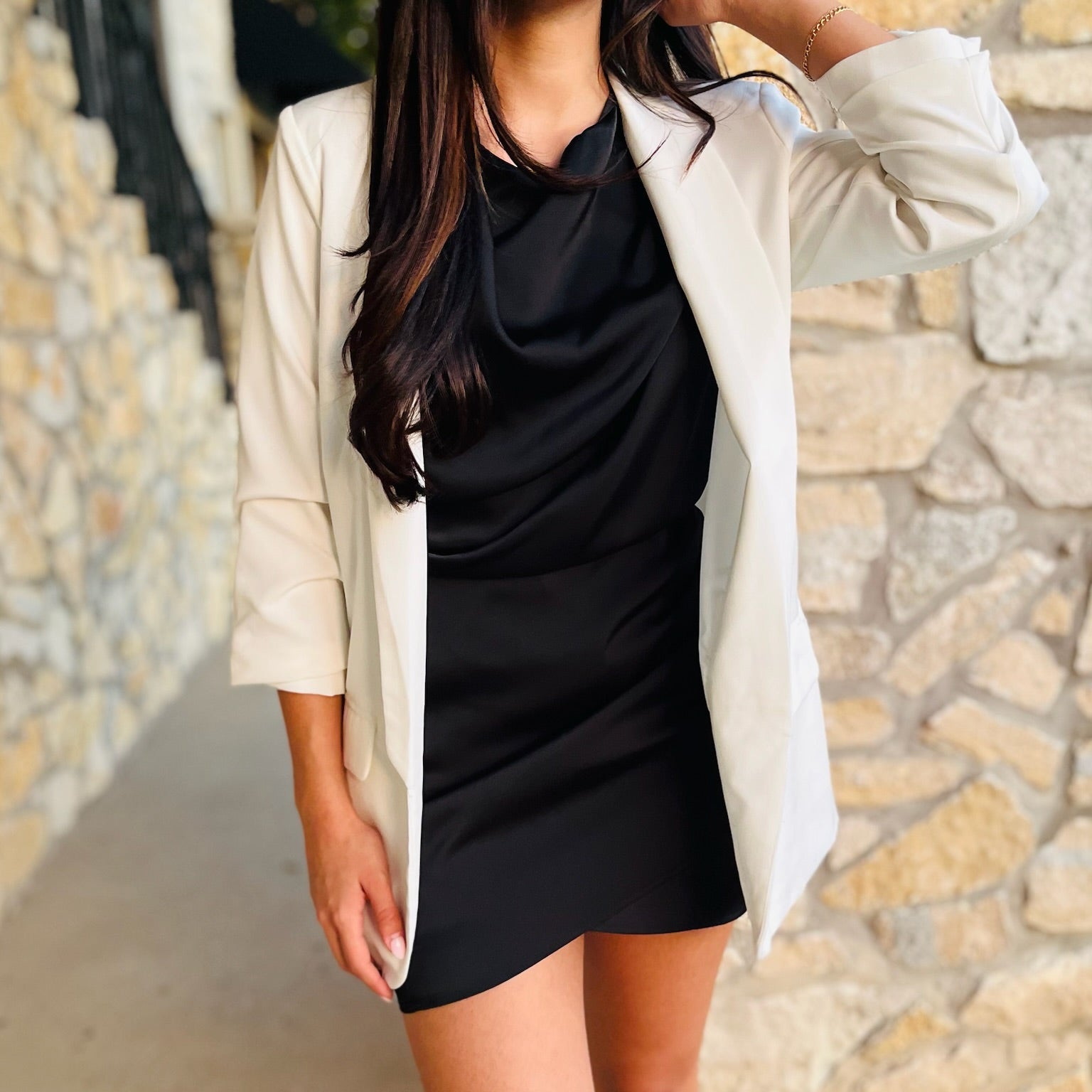 - This dress is the definition of simple sophistication. With its draped bodice, flattering cinched waist, and chic side ruching, this mini dress is made for moments you’ll always remember. From weddings and formal events to sorority functions, date parties, and homecoming, this versatile piece flatters every occasion. The sleeveless silhouette and subtle keyhole detail in the back add just the right touch of elegance, while the fully lined design ensures comfort and confidence all night long. A true timeless staple you’ll reach for again and again.