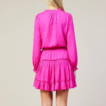 Flirty, feminine, and oh-so-flattering - this ruffled mini dress is a must-have staple for every season. The tiered silhouette and ruffle detailing create the perfect amount of movement, while the bold pink hue brings a pop of confidence and fun. Whether you’re headed to brunch with friends, a baby shower, date night, or a weekend getaway, this dress is effortlessly chic for any occasion. Pair it with boots for a playful daytime vibe or heels to elevate your evening look - either way, it’s a guaranteed favorite.