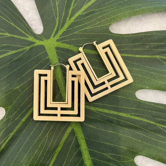 Squares On My Mind Wood Square Cut Out Earrings