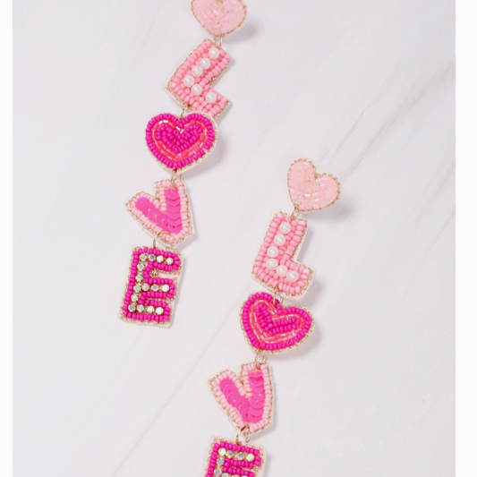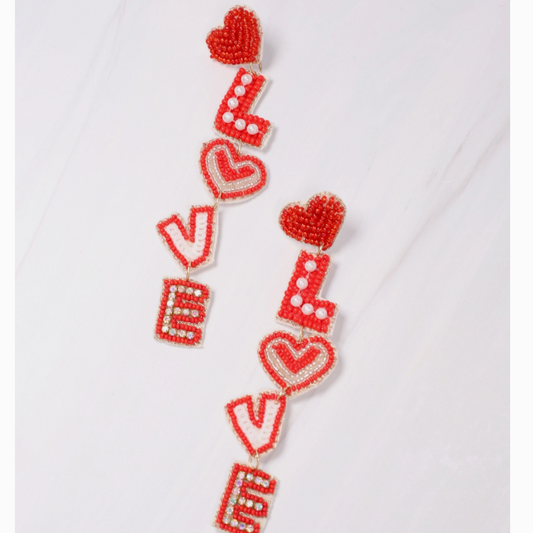LOVE Embellished Dangle Drop Beaded Earrings