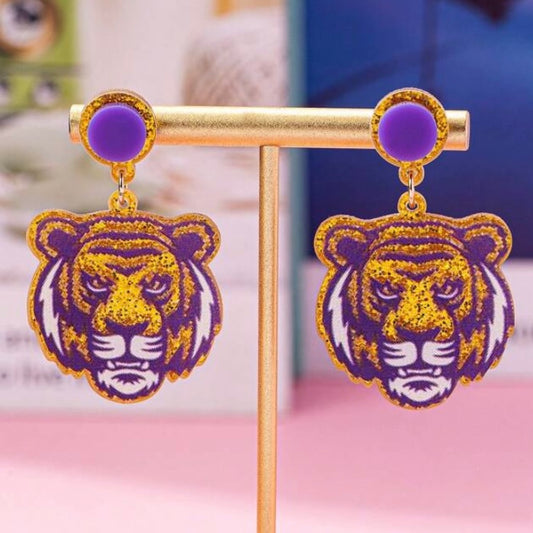Geaux Gold Glittery Tiger Acrylic Earrings