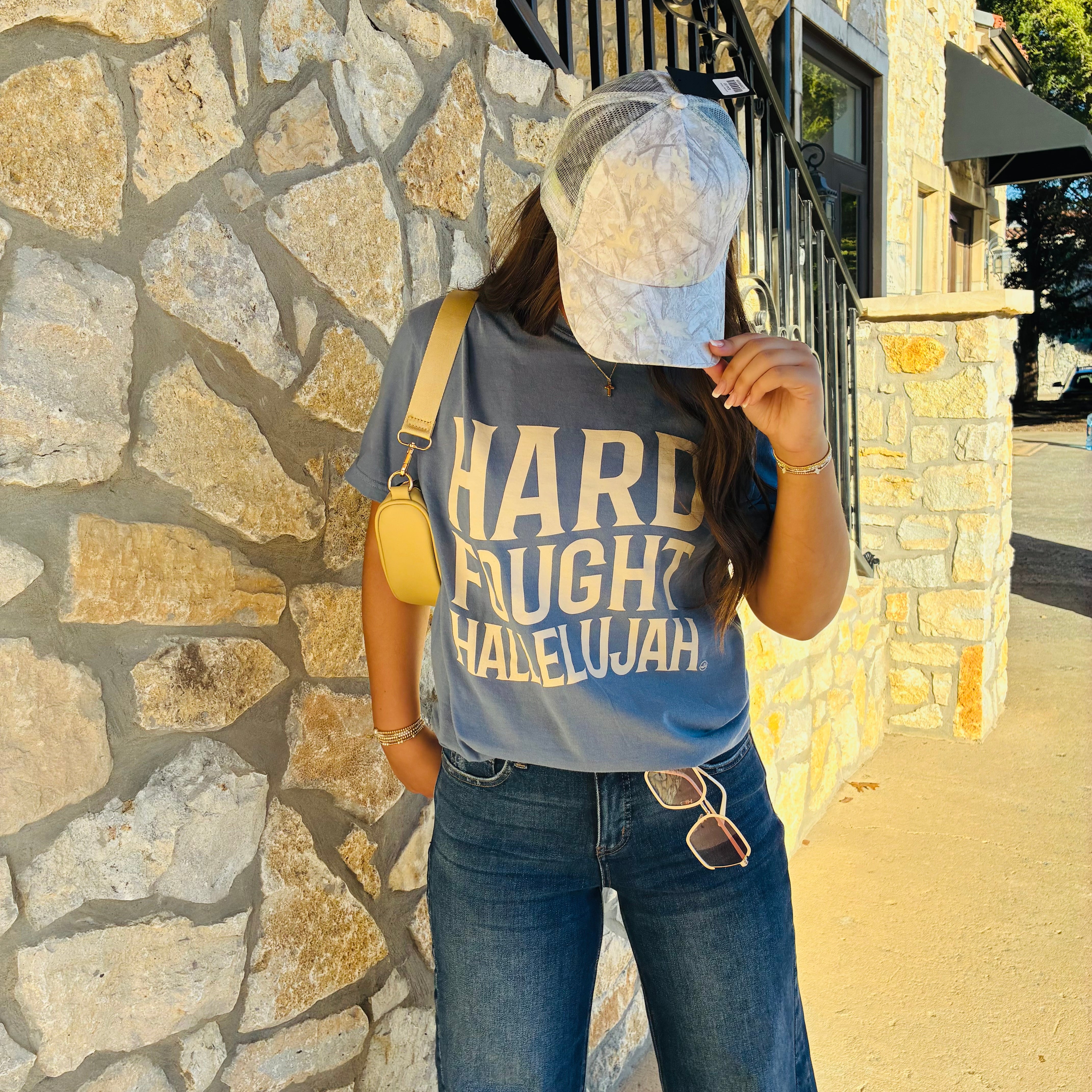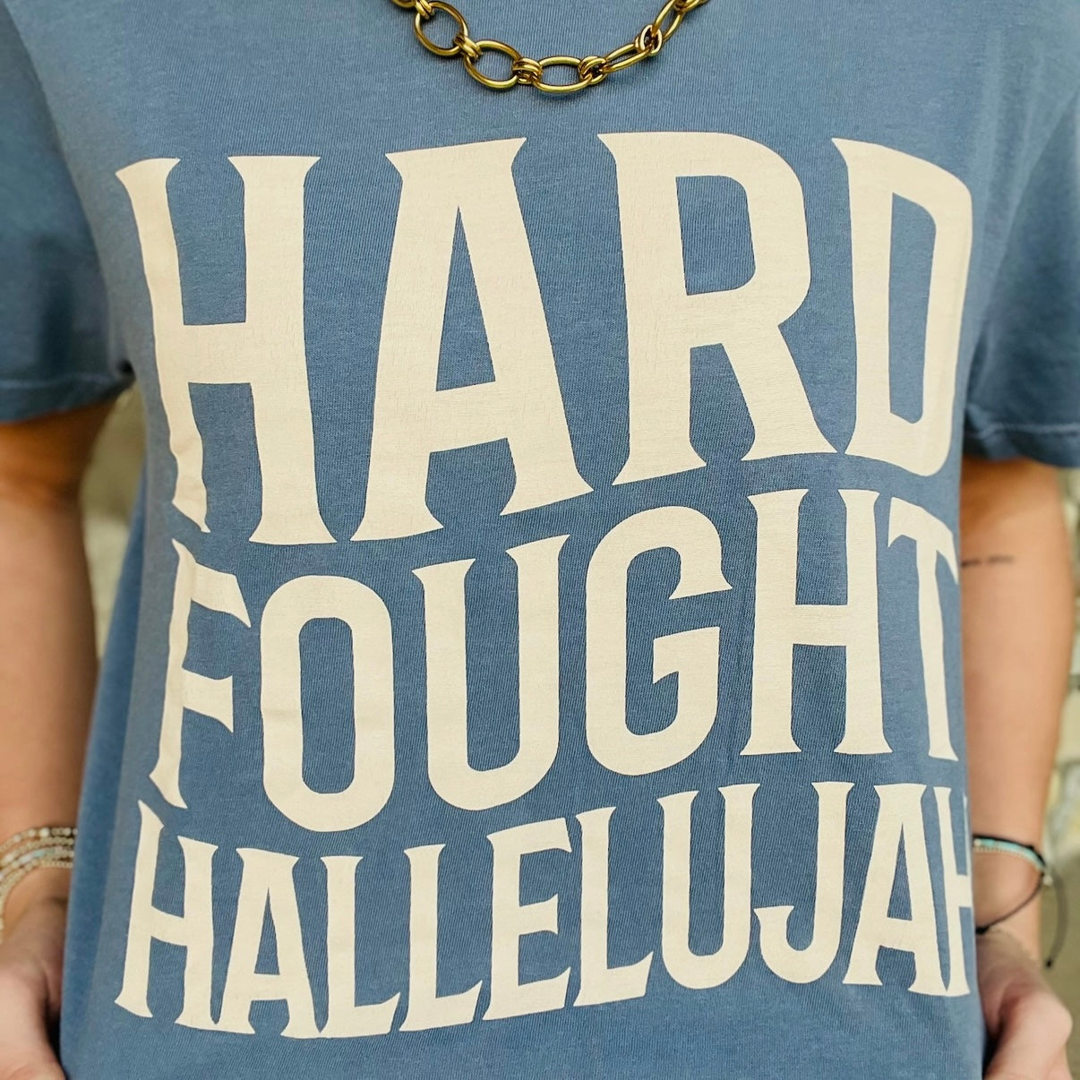 - A powerful reminder of praise through every battle - this “Hard Fought Hallelujah” tee is meaningful, uplifting, and made to be worn with purpose. It’s the perfect everyday piece for worship leaders, greeters, youth leaders, or anyone who wants their wardrobe to reflect their faith journey. Comfortable, casual, and full of heart, this tee makes a beautiful and thoughtful gift: encouraging, inspiring, and easy to wear on Sundays, during worship practice, or anytime you want to carry a message of gratitude and victory.