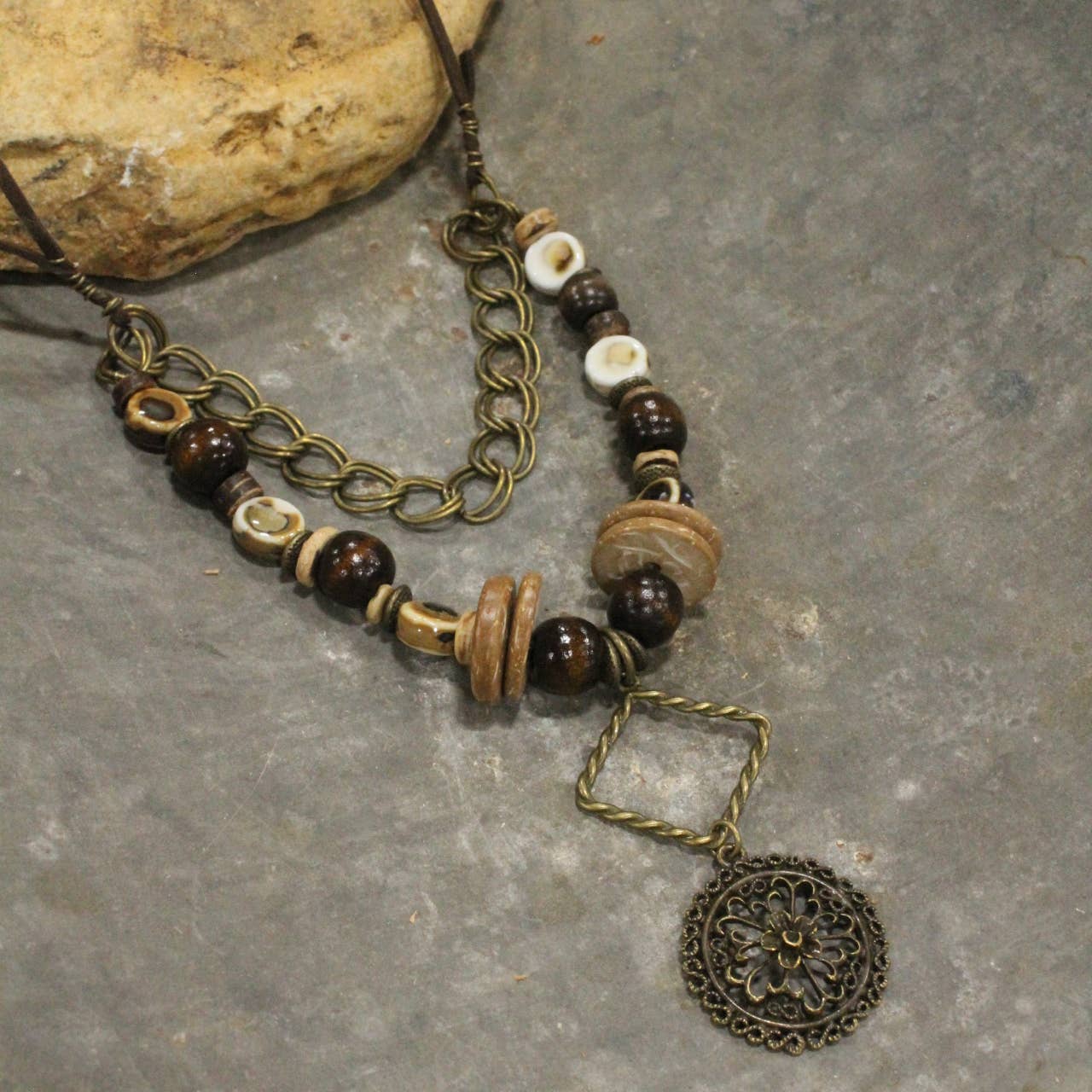 - Embrace your earthy side with this oversized stone necklace! Great piece to elevate your look!