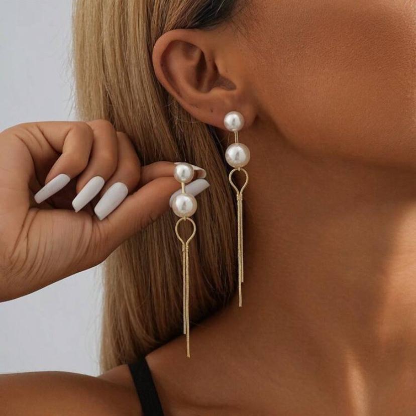 Elizabeth Elegant Pearl Chain Tassel Earrings