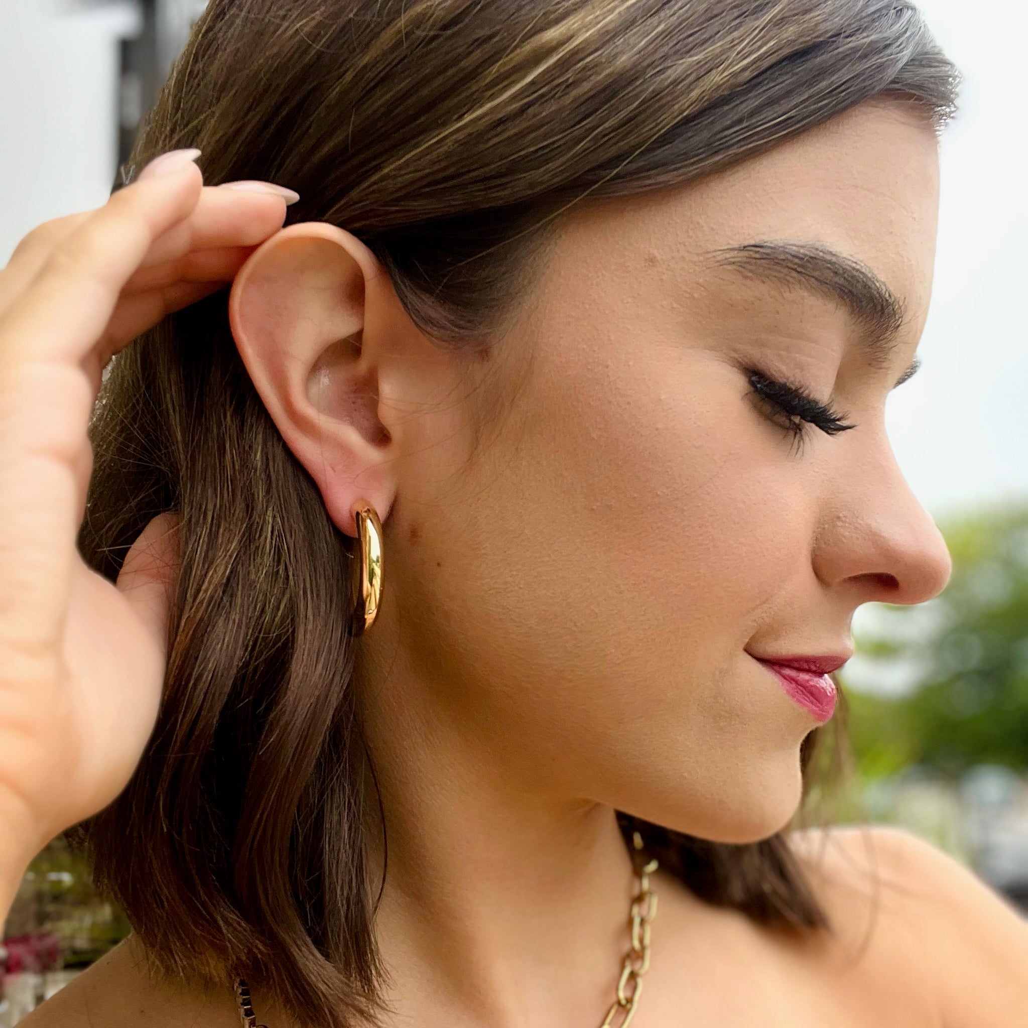 - Who doesn't love a good classic hoop?! And these add a bit more flair because of their chunkiness!