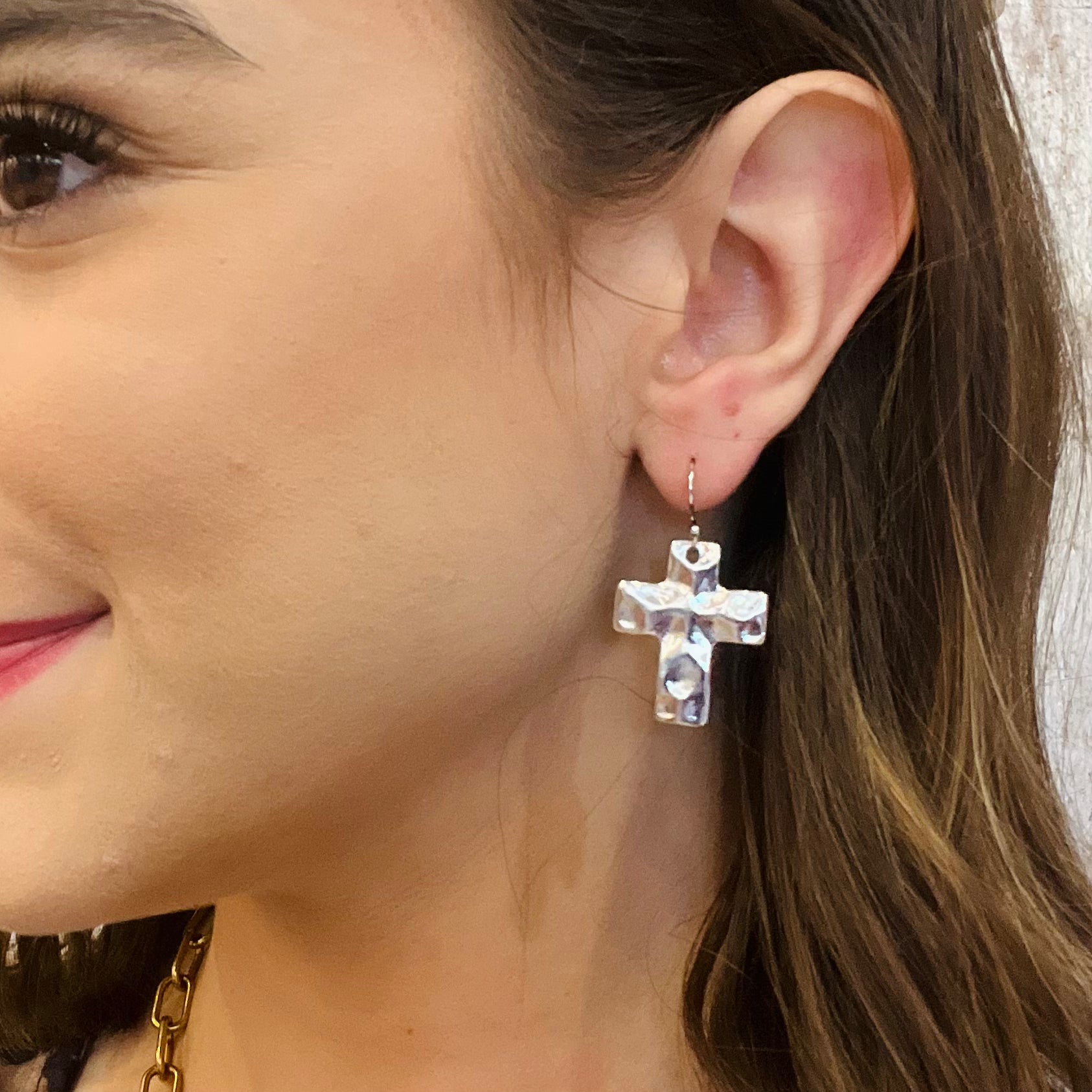 - A meaningful accessory with timeless style, these hammered cross earrings are the perfect way to carry your faith with you every day. Available in gold or silver, their textured finish adds a touch of modern charm while keeping the design classic and symbolic. Lightweight and easy to wear, they make a thoughtful gift for loved ones or a beautiful reminder of faith for yourself. Pair them with anything from casual outfits to Sunday best for a look that’s both stylish and heartfelt.