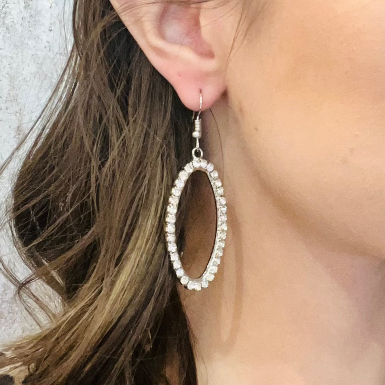 Glitz Glamour Rhinestone Oval Drop Earrings