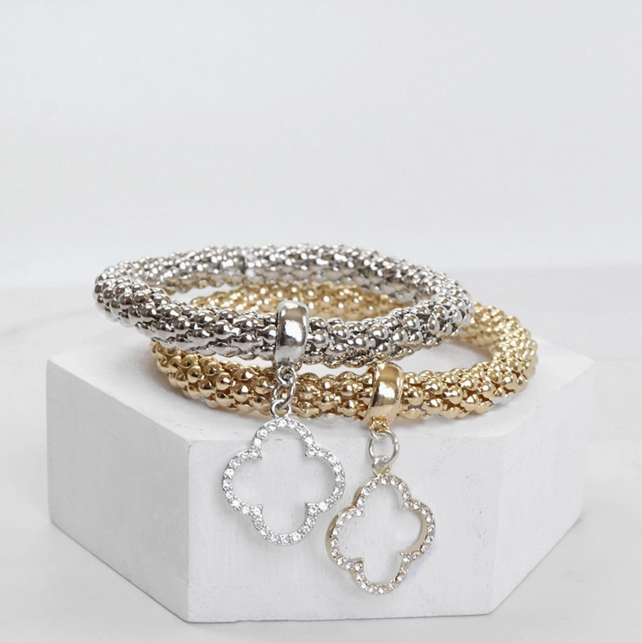 - Clover charm with clear crystal rhinestones