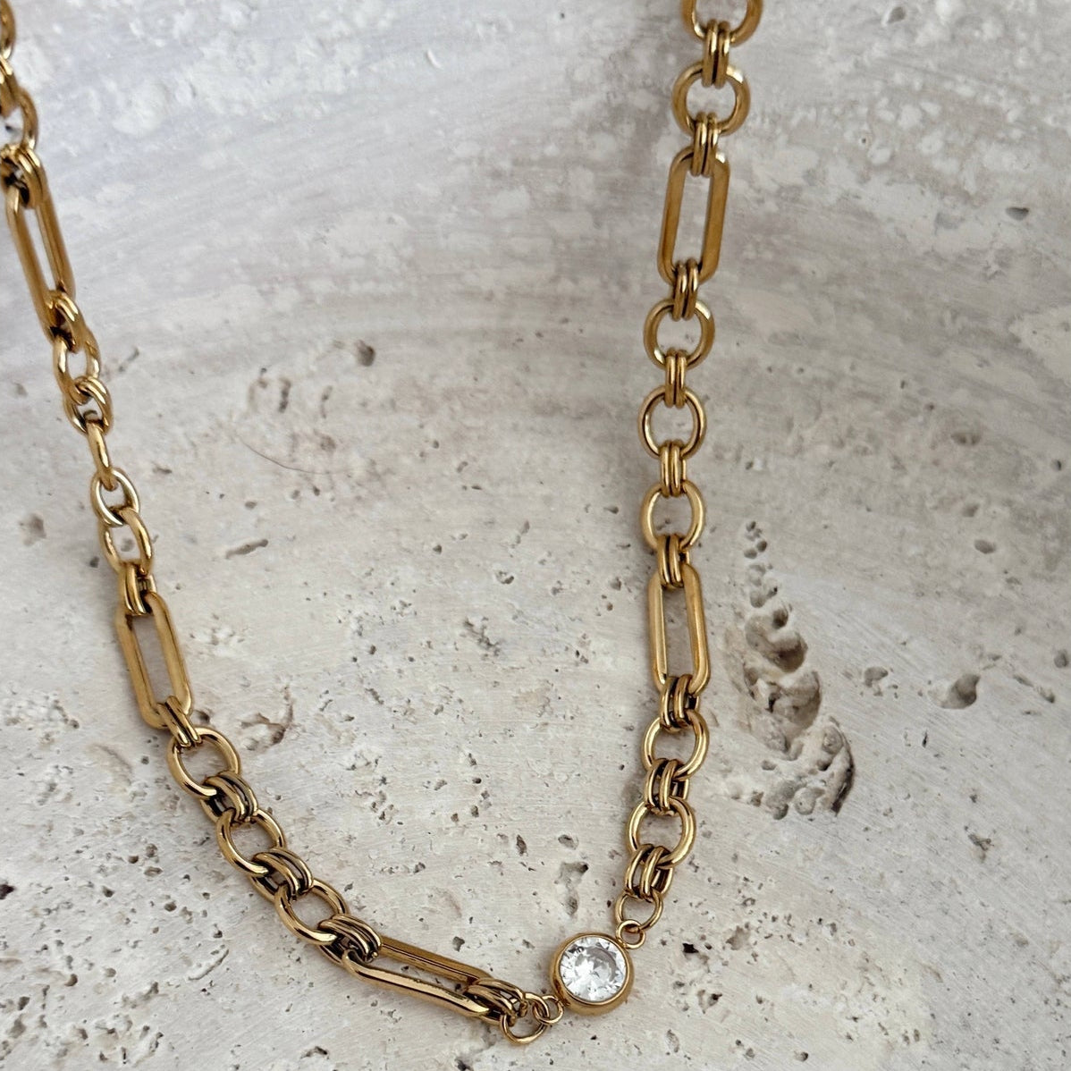 Monaco Mixed Chain & Rhinestone Gold Necklace