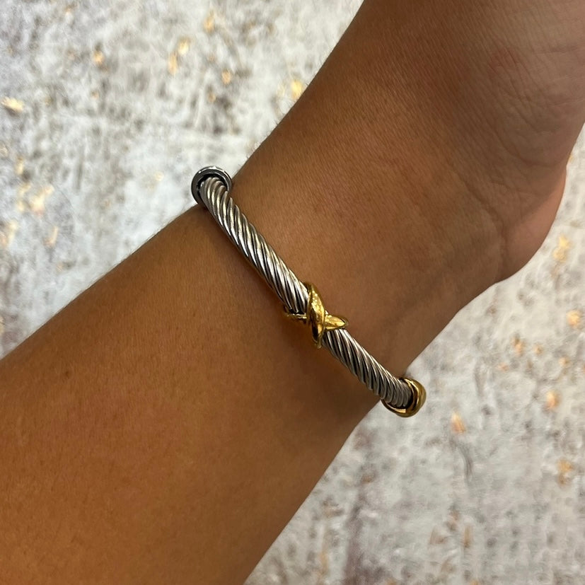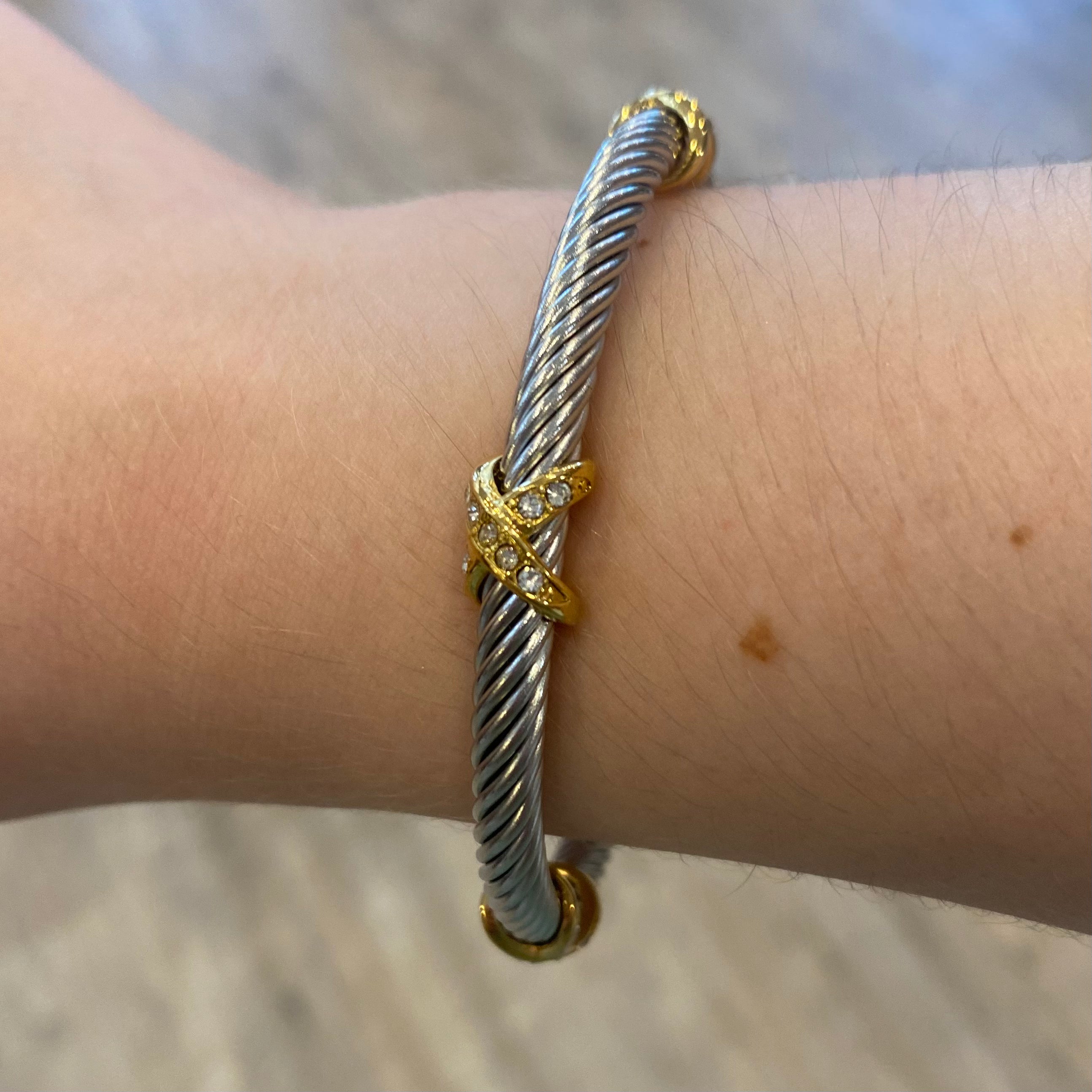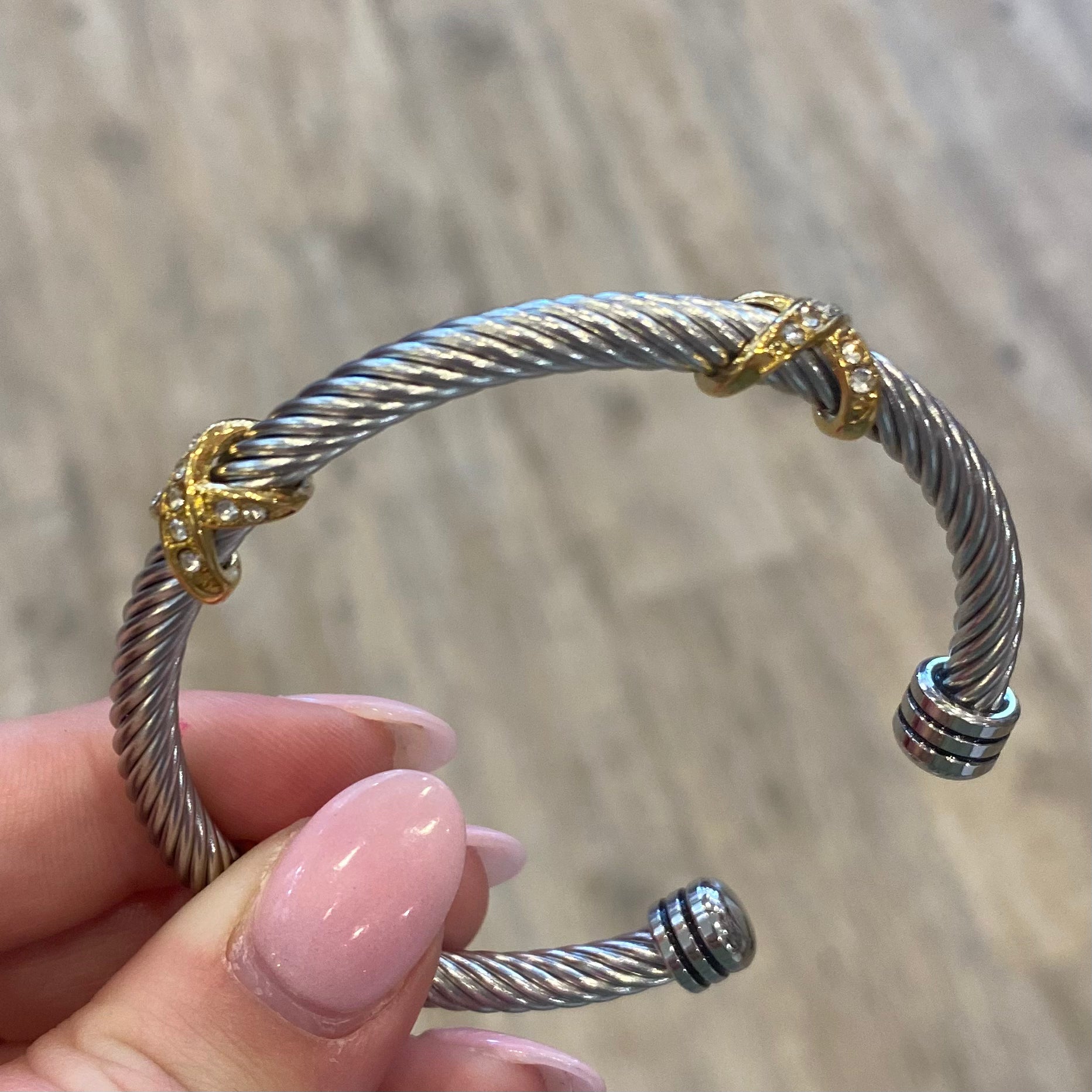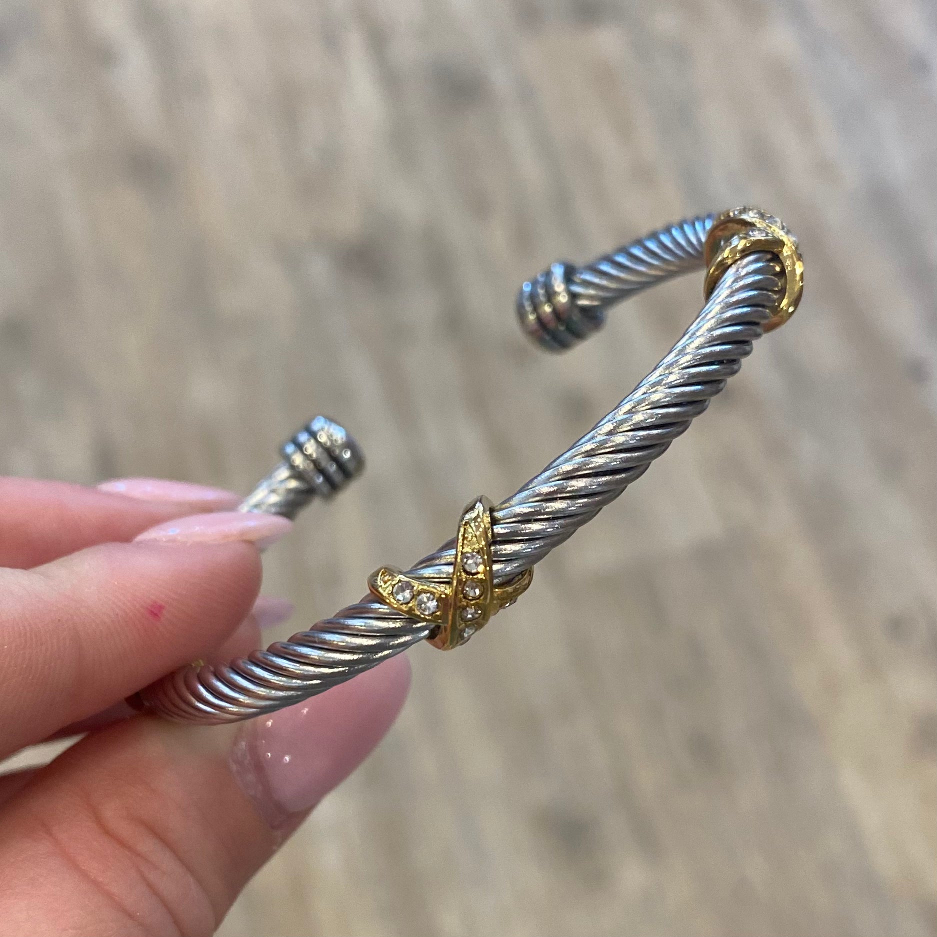 Maredith Mixed Metal X Rhinestone Bracelet Cuff