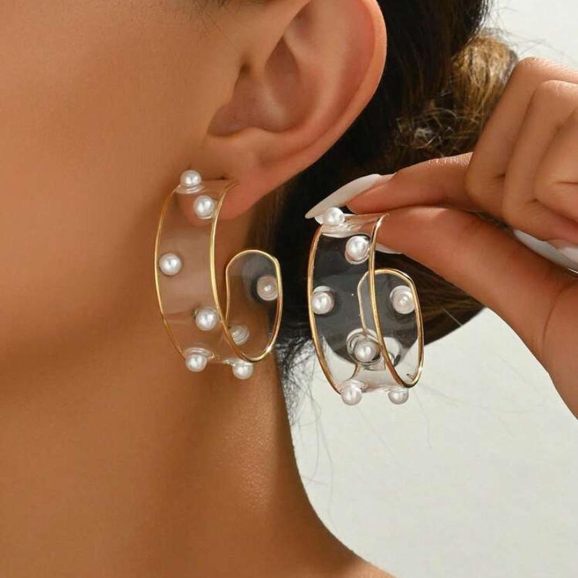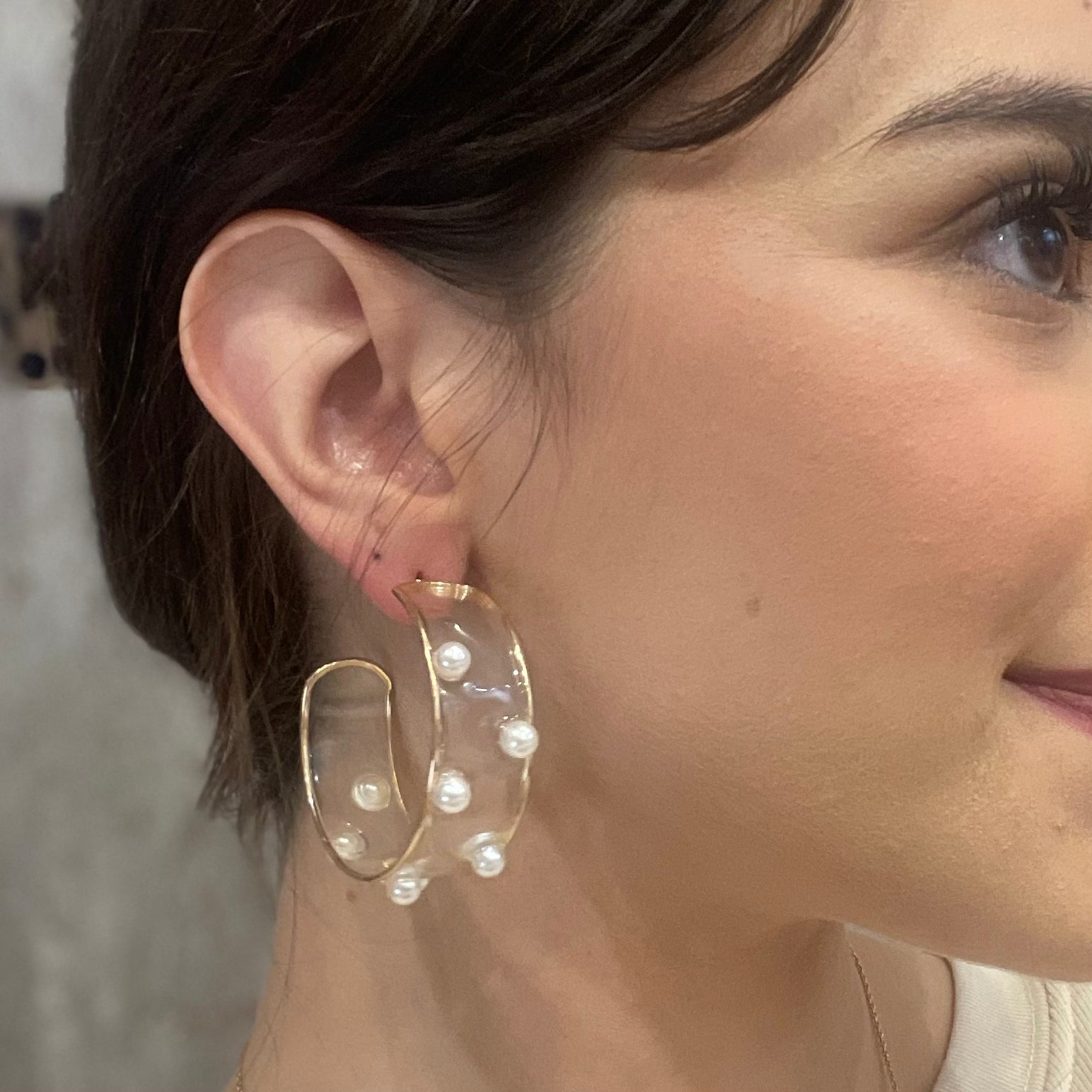 - A unique twist on the class gold chunky hoop that brings in the elements of pearl and clear!