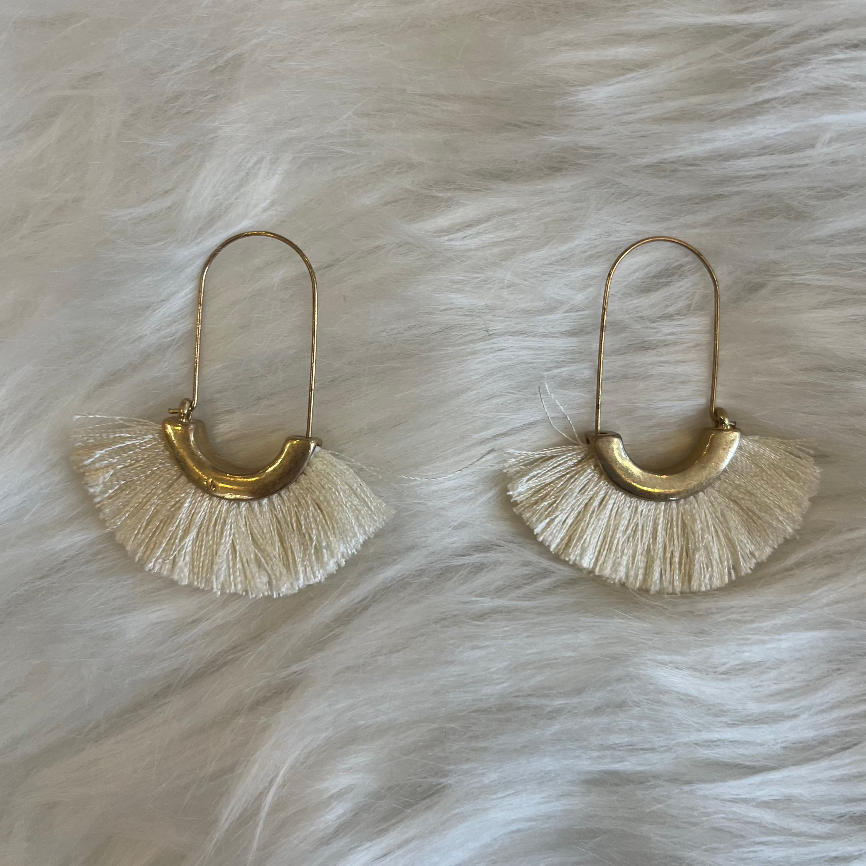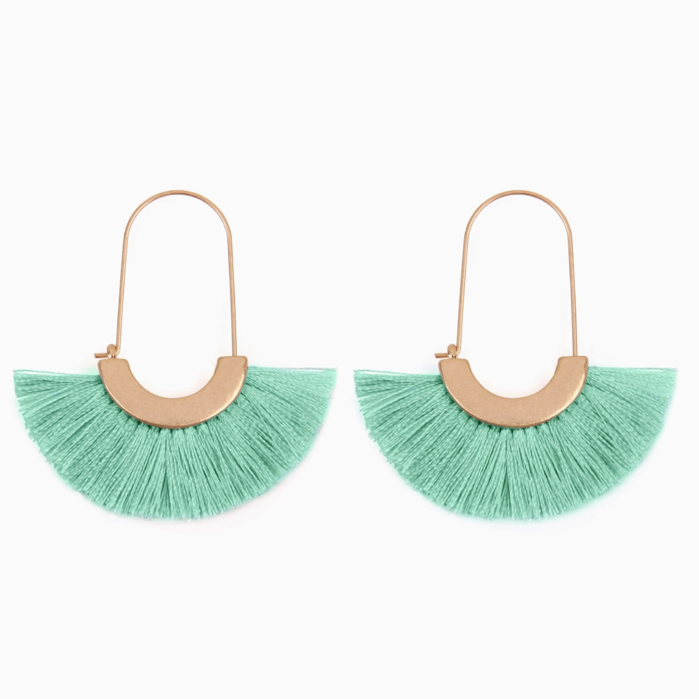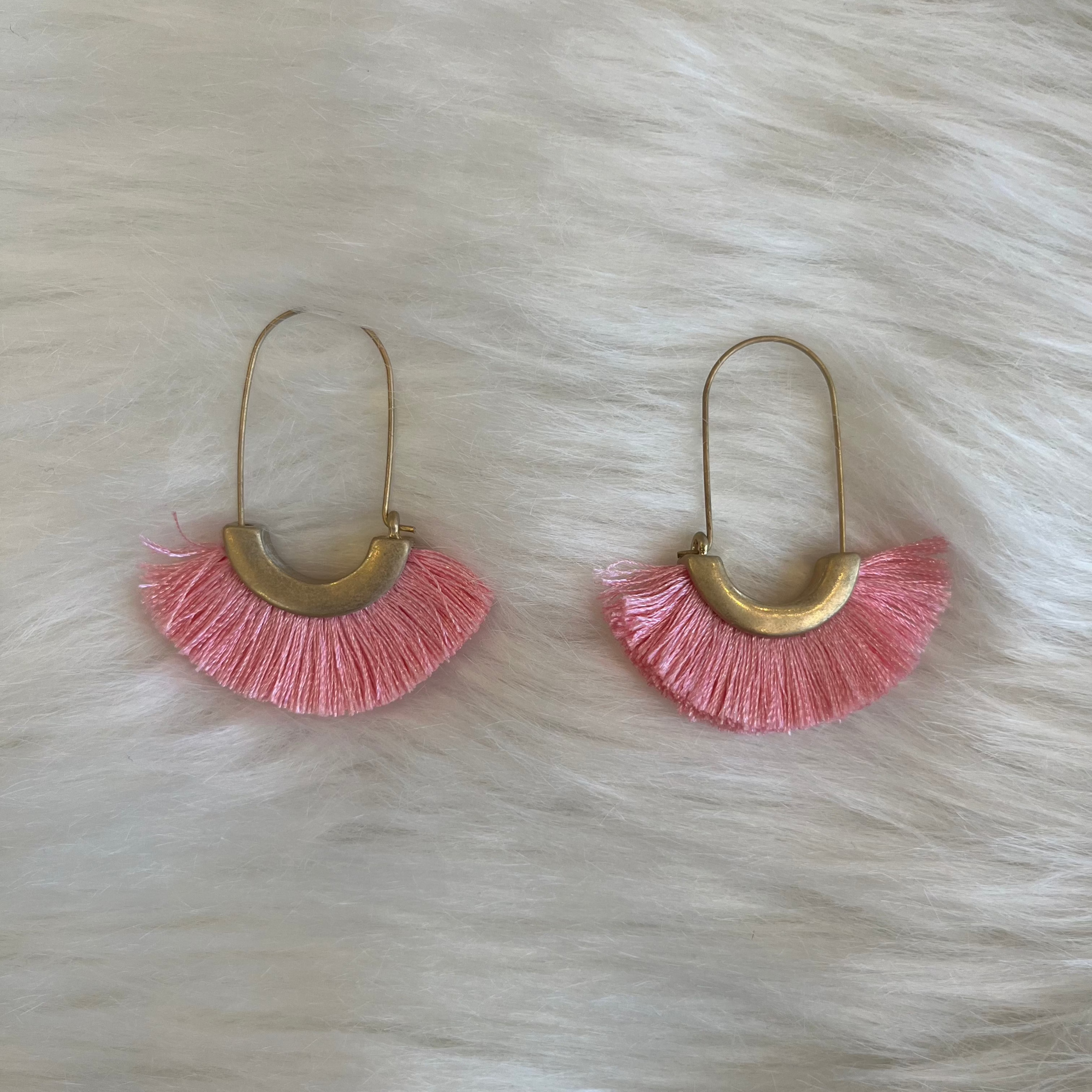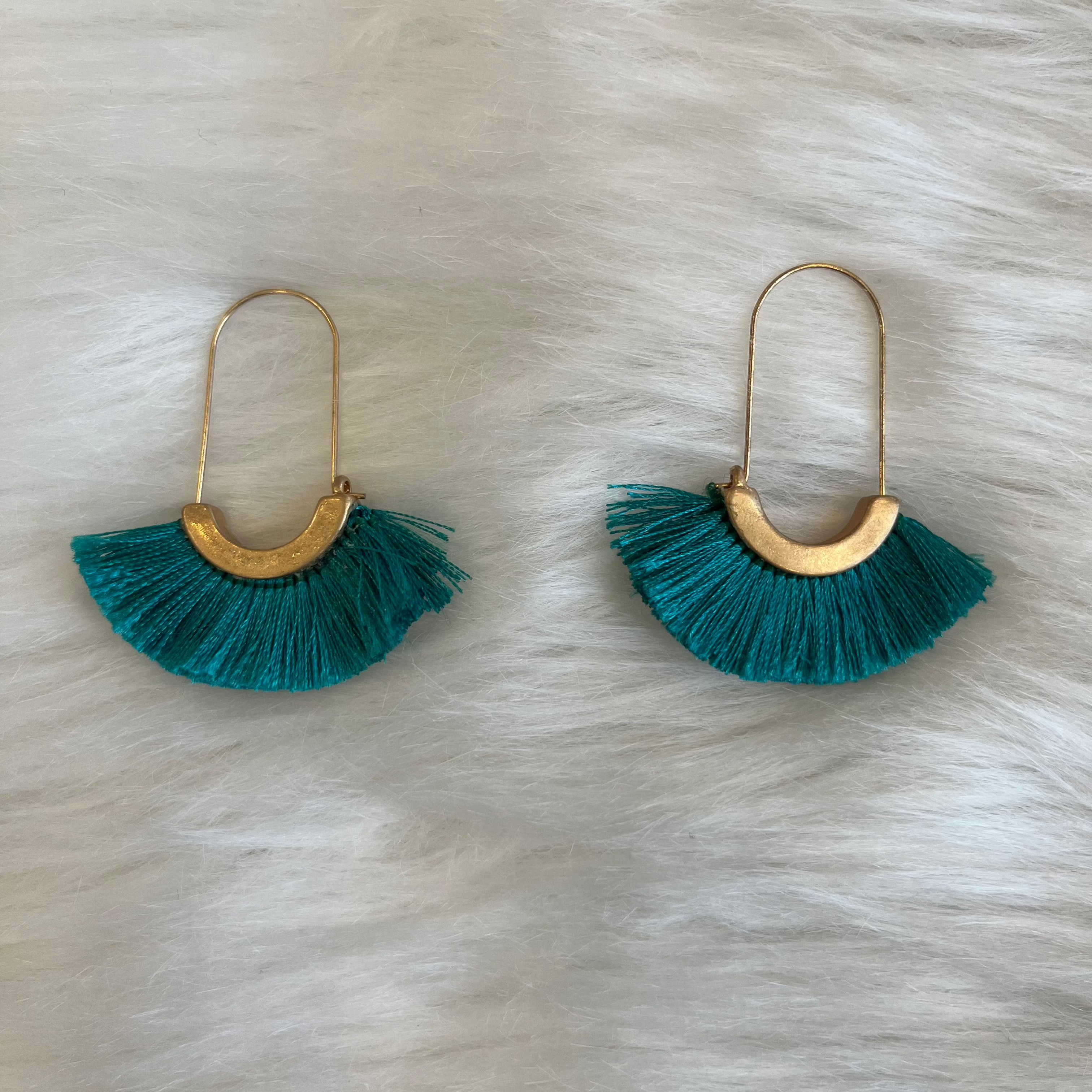 - Pretty tassels in a bold hue fan out beneath these gold-finished earrings, adding a fun flair to any outfit you choose to pair them with.