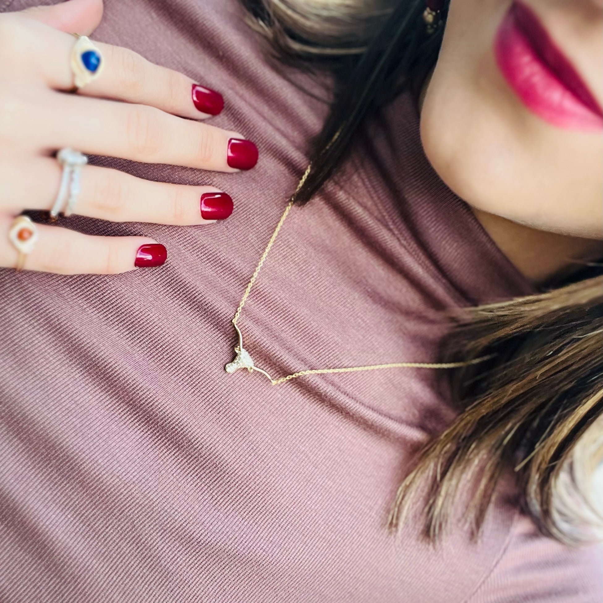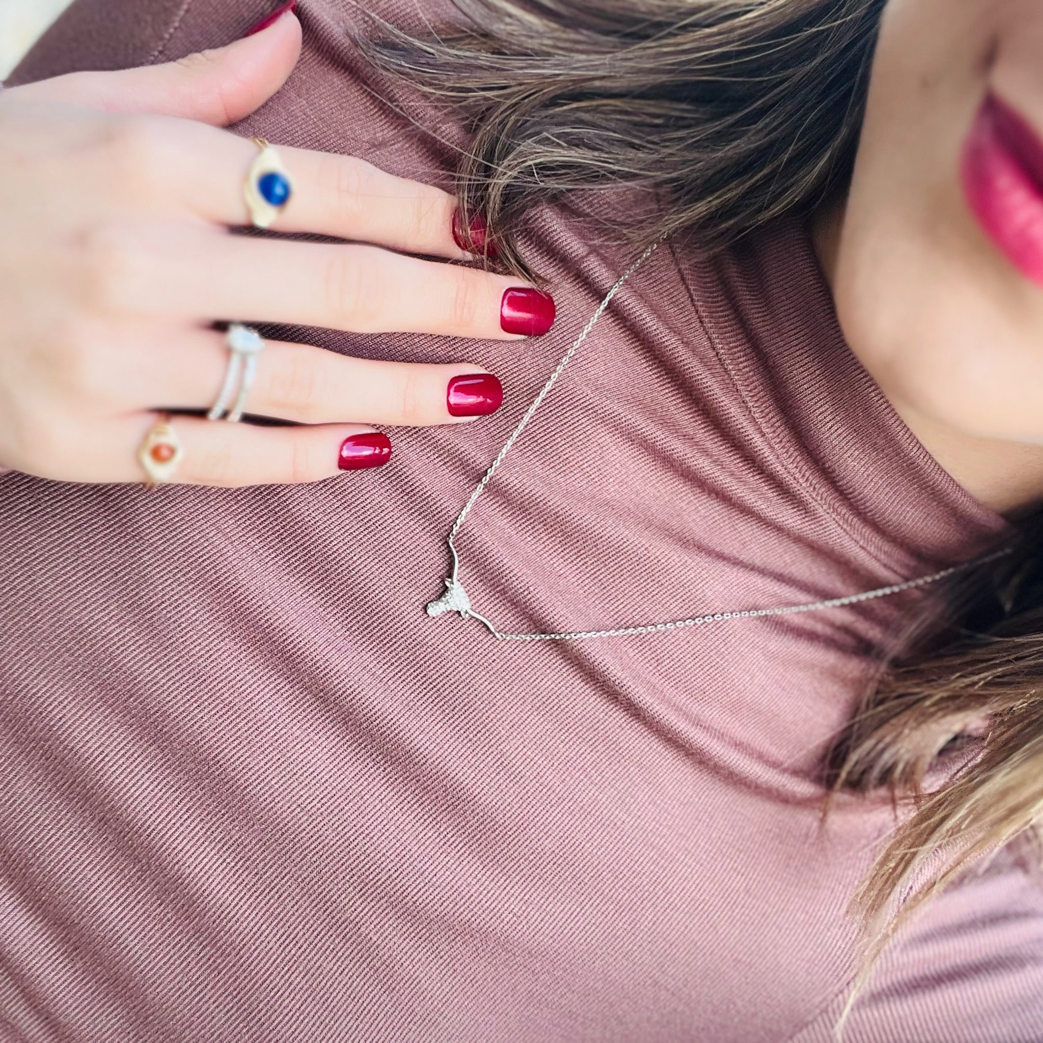 - Show off your Texas pride in style with this dainty longhorn necklace. Embellished with sparkling CZ crystals along the head, it’s the perfect mix of subtle sparkle and everyday wear. Available in both gold and silver, this piece makes a thoughtful gift for University of Texas students, alumni, or any Longhorns fan. Whether you’re repping your team on game day or adding a touch of western flair to your daily look, this necklace is the ultimate nod to the Lone Star State.