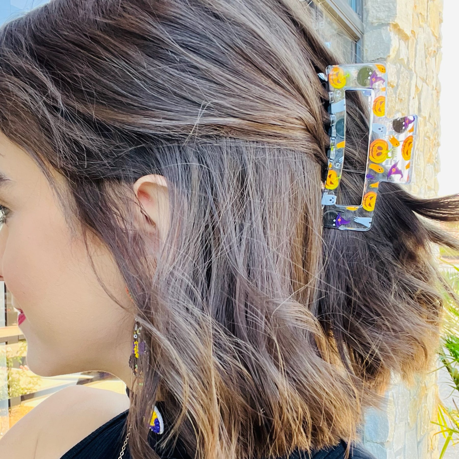 Spooky season just got a stylish upgrade! Our Halloween claw clips come in a variety of sizes and colors, perfect for creating easy updos and playful hairstyles all October long. From bold statement clips to everyday minis, each one is designed to hold your hair comfortably while adding a festive touch. Whether you’re headed to the pumpkin patch, a Halloween party, or just want a subtle seasonal vibe, these clips are the cutest way to celebrate all things spooky.