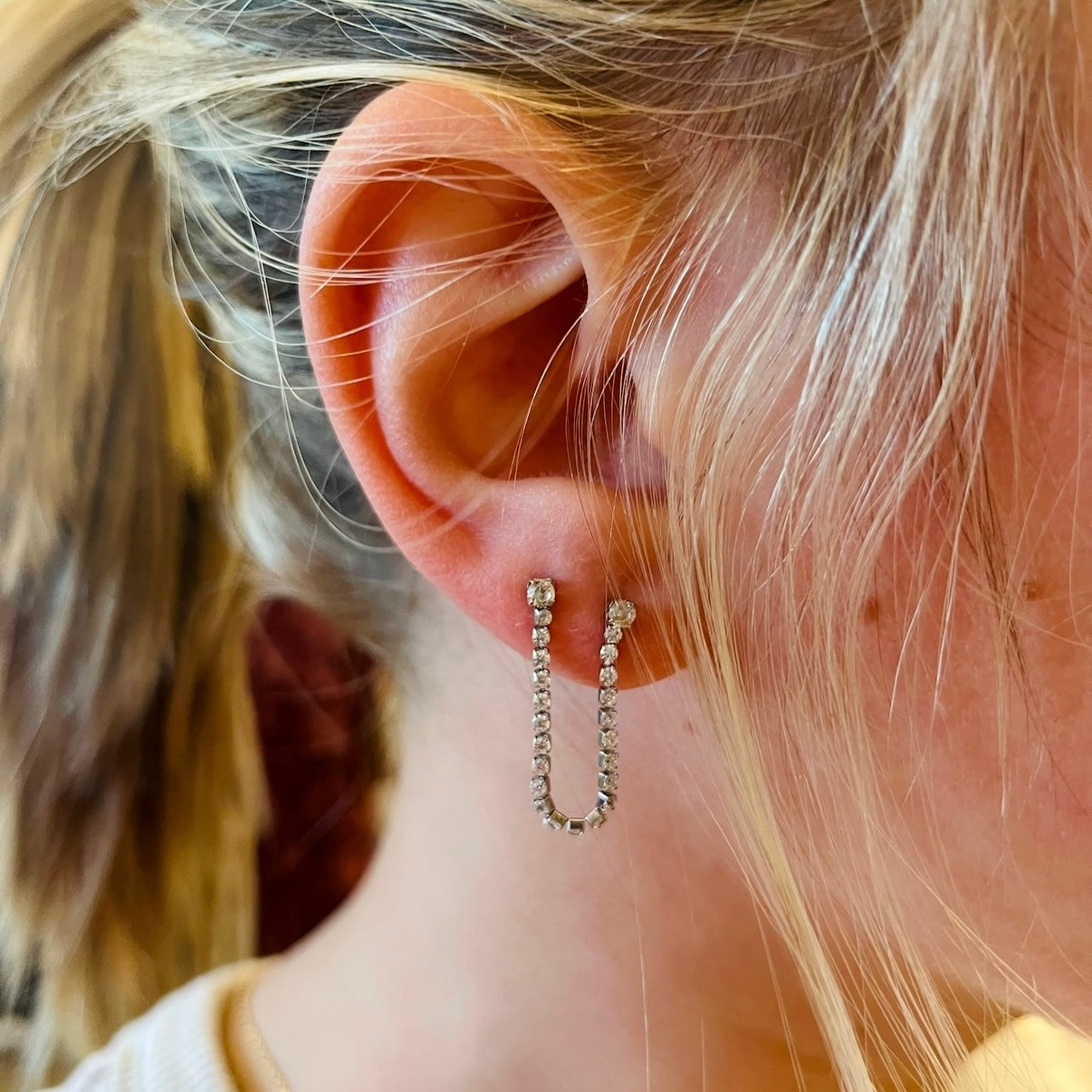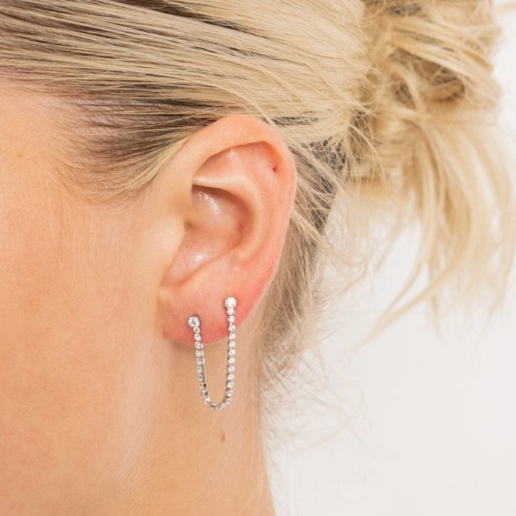 - Double stud with dainty chain linking them