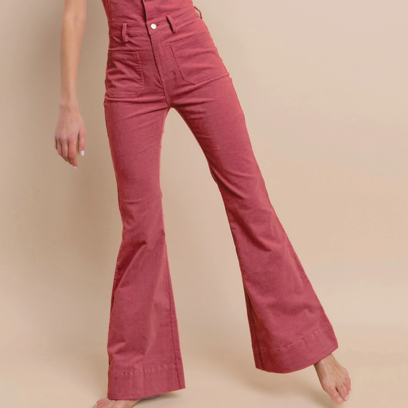 Knoxville Corduroy Button Up Flare Jumpsuit - FINAL SALE