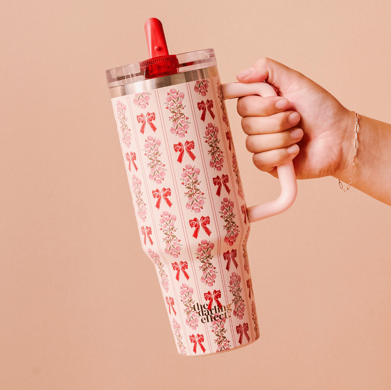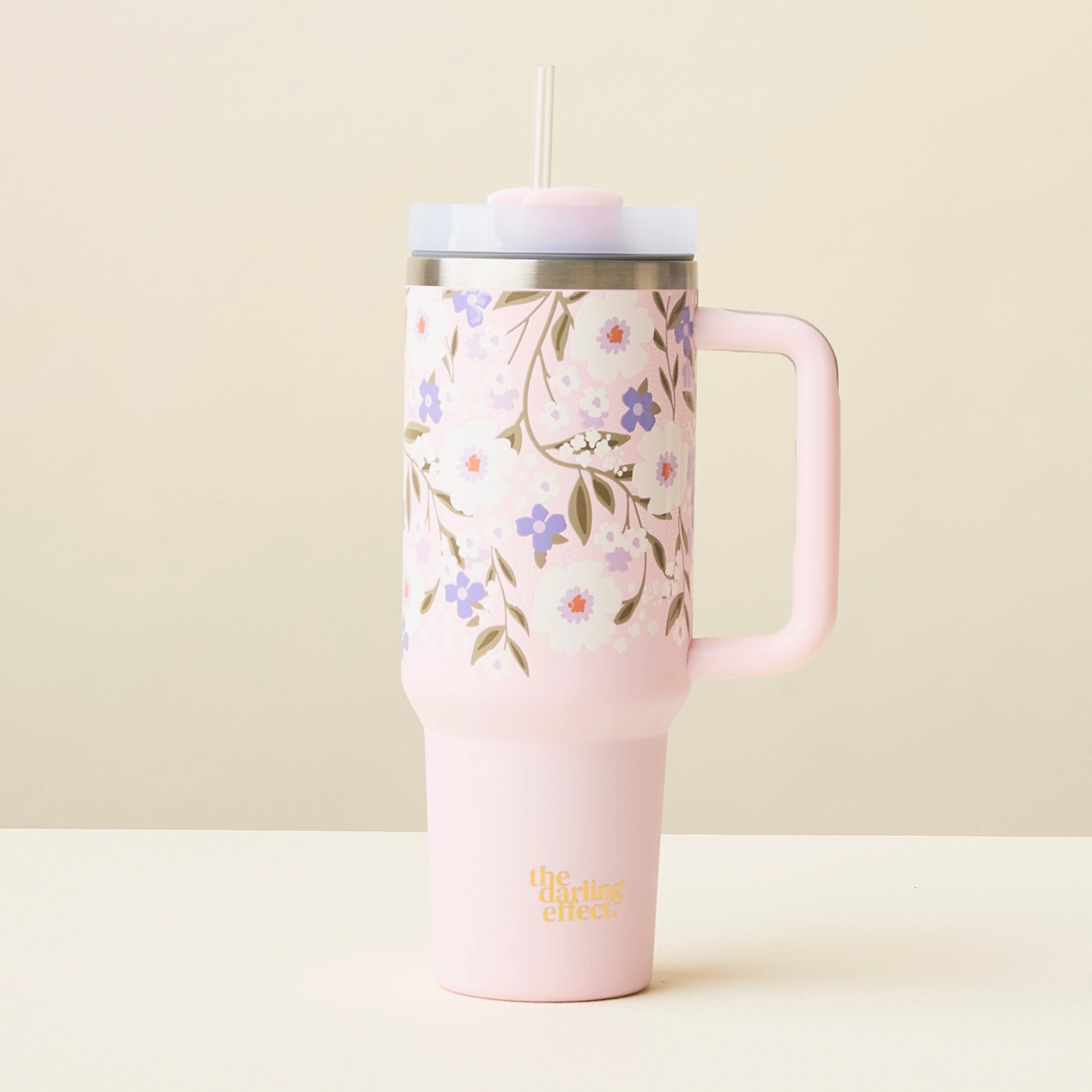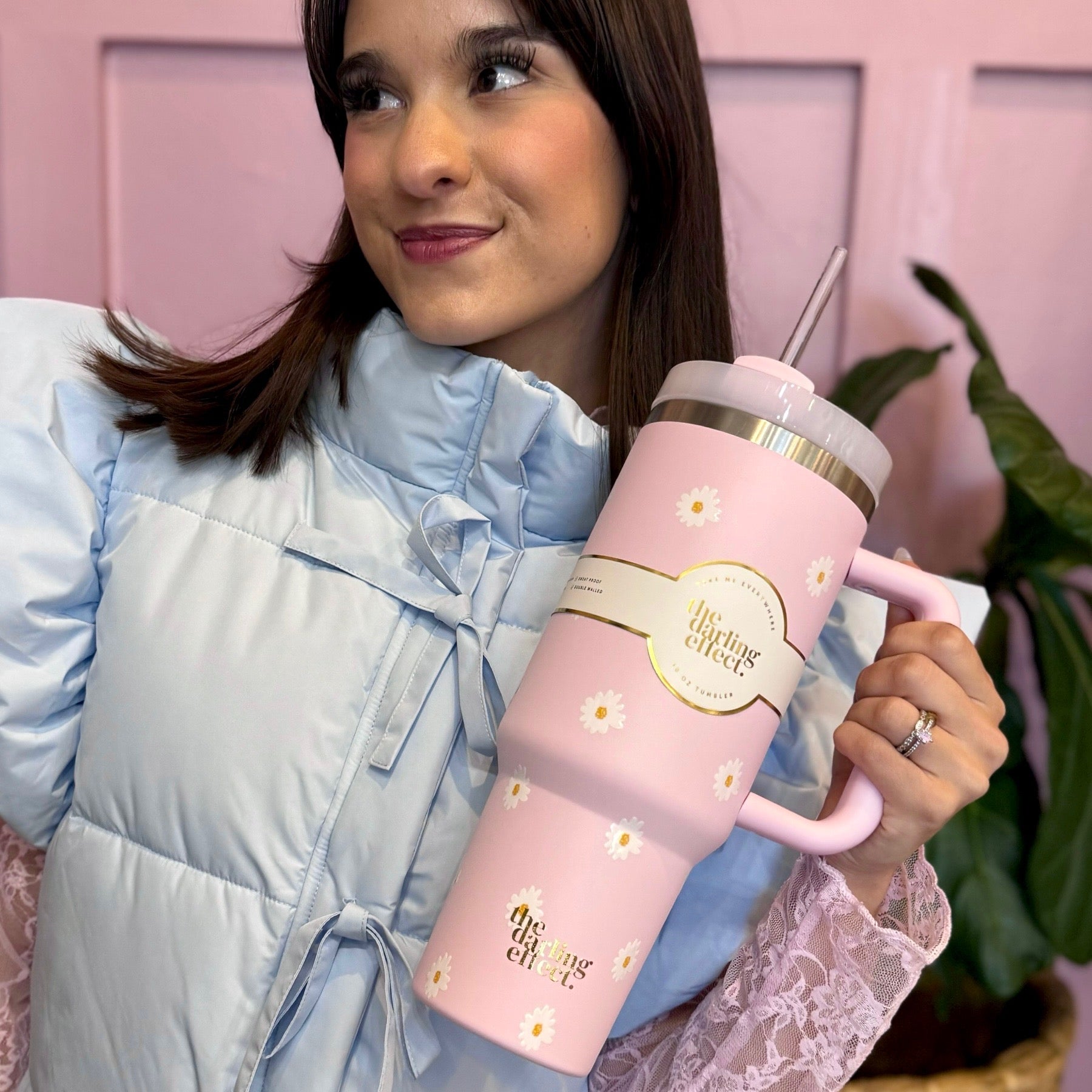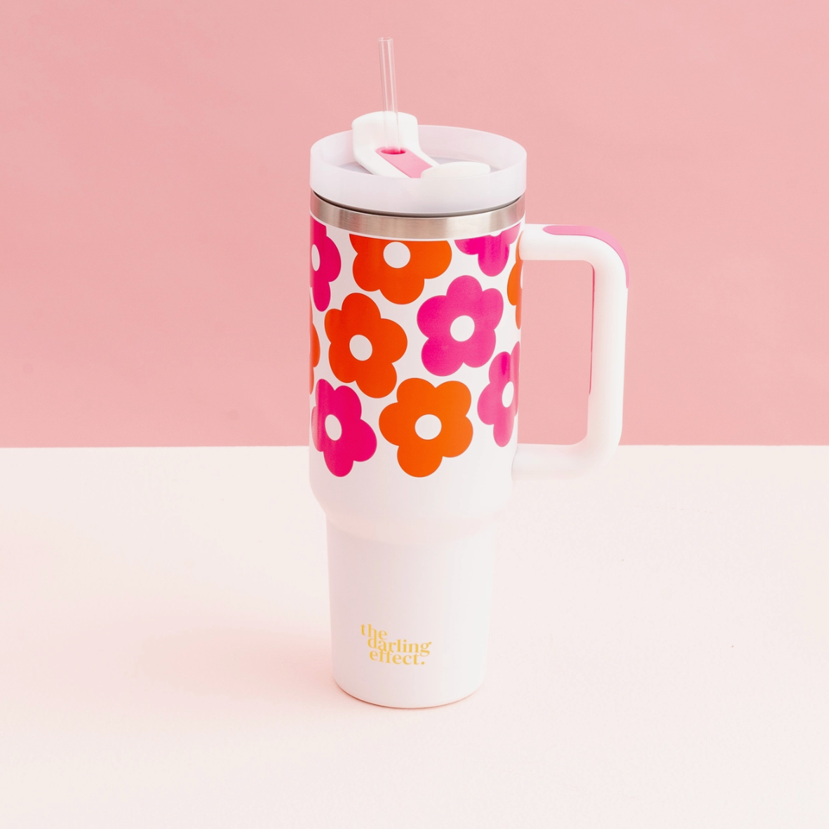 Stay hydrated in style! Our 40oz tumblers keep your drinks ice-cold or piping hot all day long, perfect for busy mornings, errands, or long workdays. Featuring a sturdy handle, spill-resistant lid, and sleek design, it’s the ultimate everyday essential. Available in multiple colors to match your vibe, these tumblers make the cutest gift or treat for yourself! This hot new trendy drinkware style holds up to 40 oz. of your favorite beverage!
