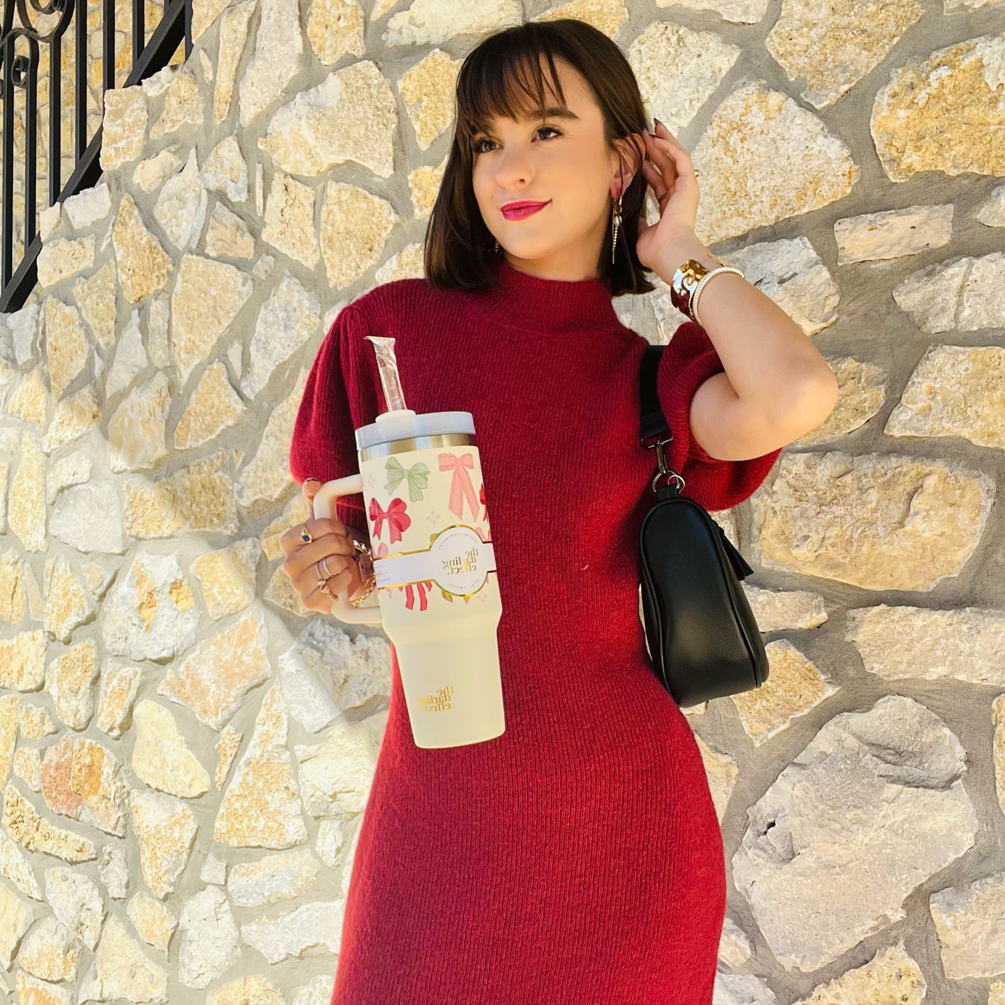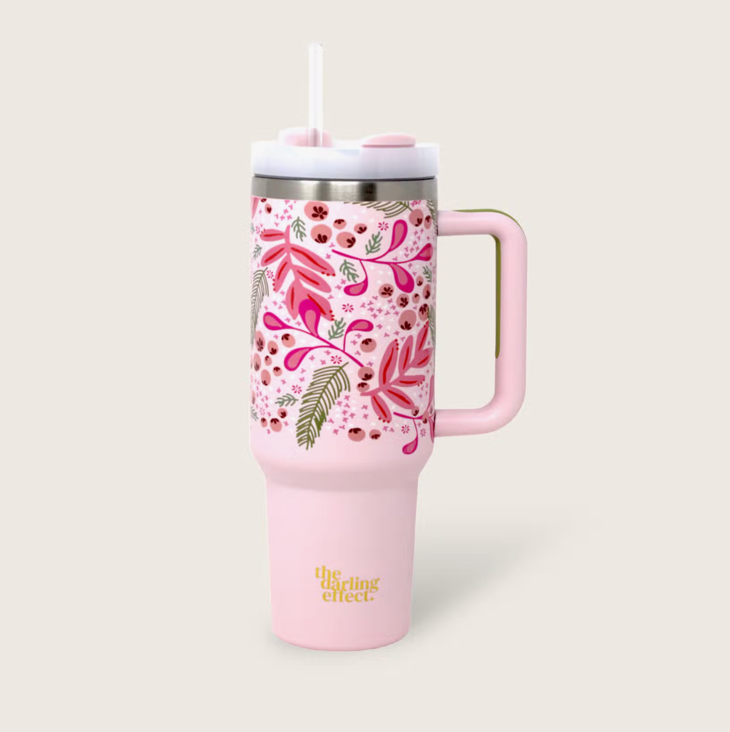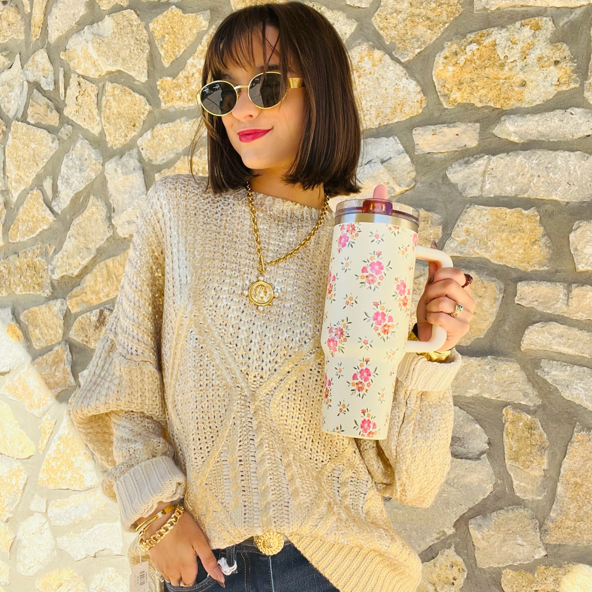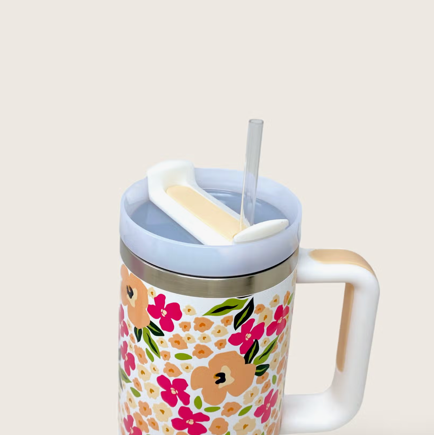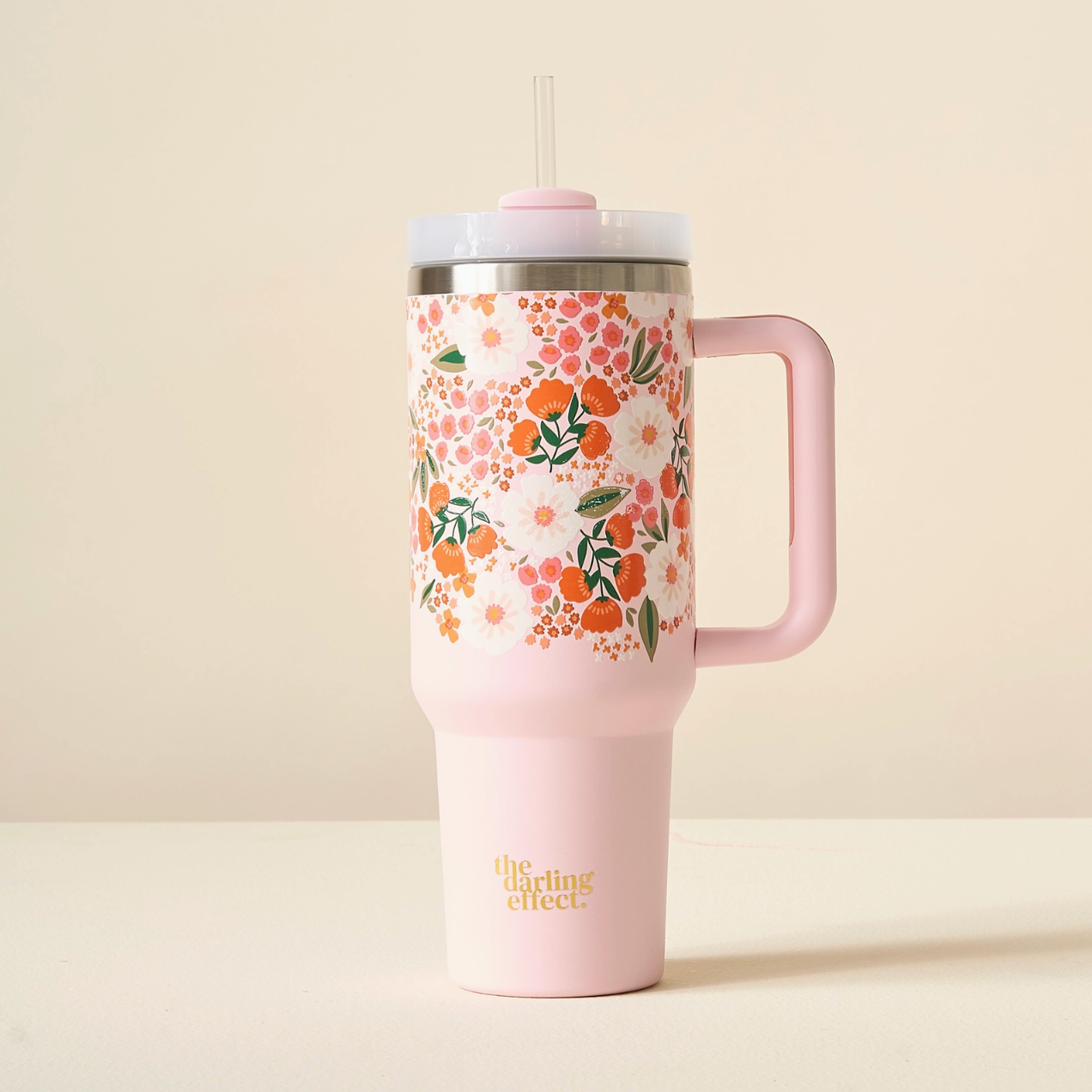 Stay hydrated in style! Our 40oz tumblers keep your drinks ice-cold or piping hot all day long, perfect for busy mornings, errands, or long workdays. Featuring a sturdy handle, spill-resistant lid, and sleek design, it’s the ultimate everyday essential. Available in multiple colors to match your vibe, these tumblers make the cutest gift or treat for yourself! This hot new trendy drinkware style holds up to 40 oz. of your favorite beverage!