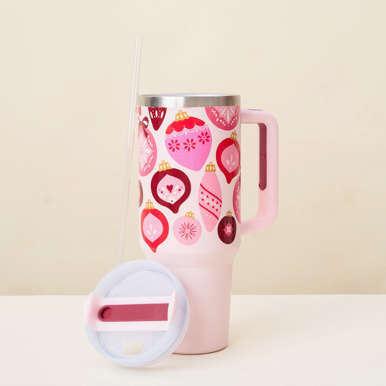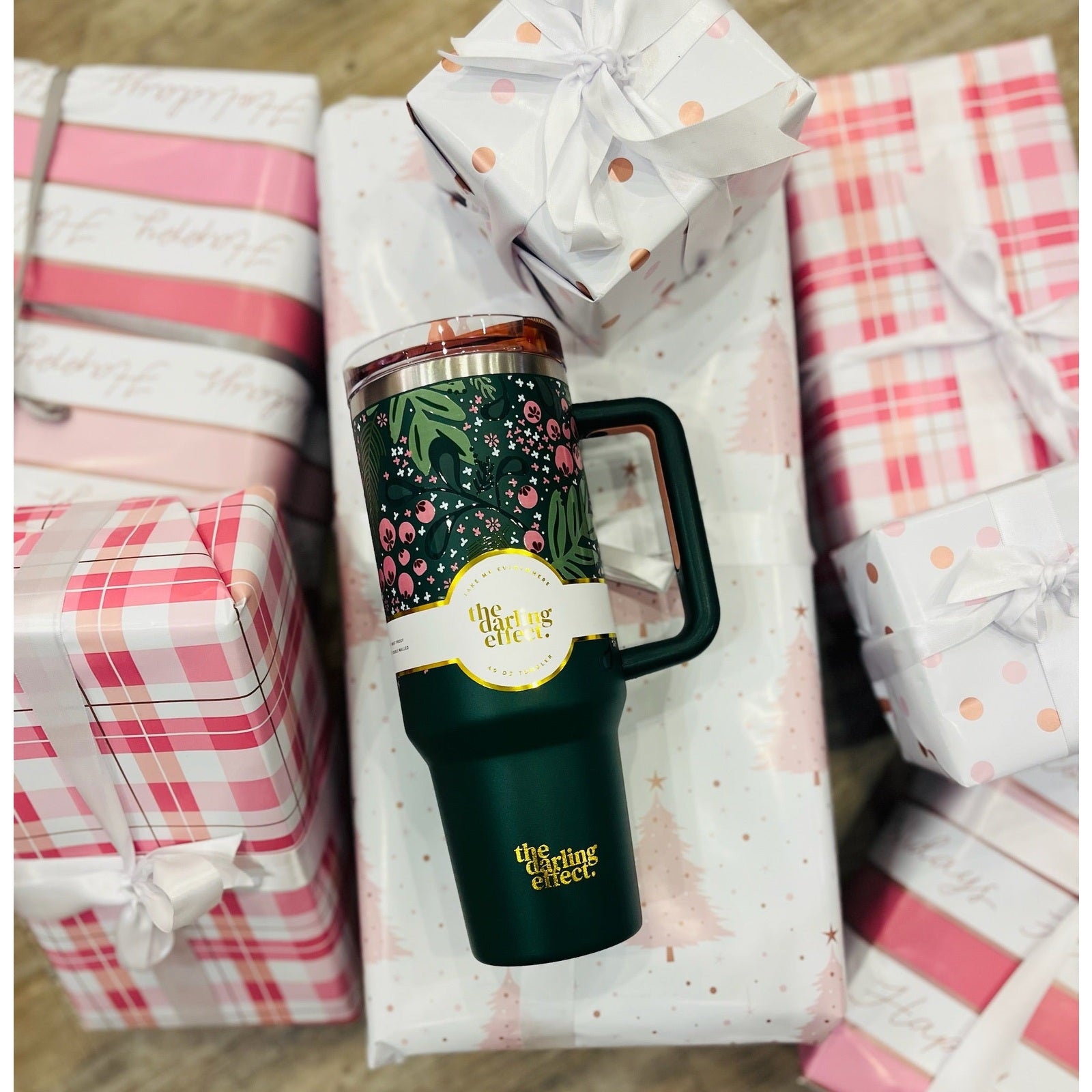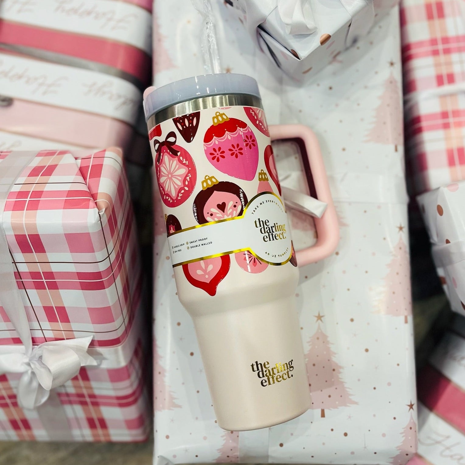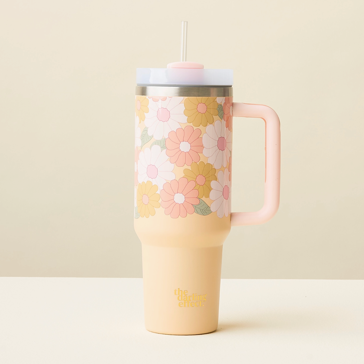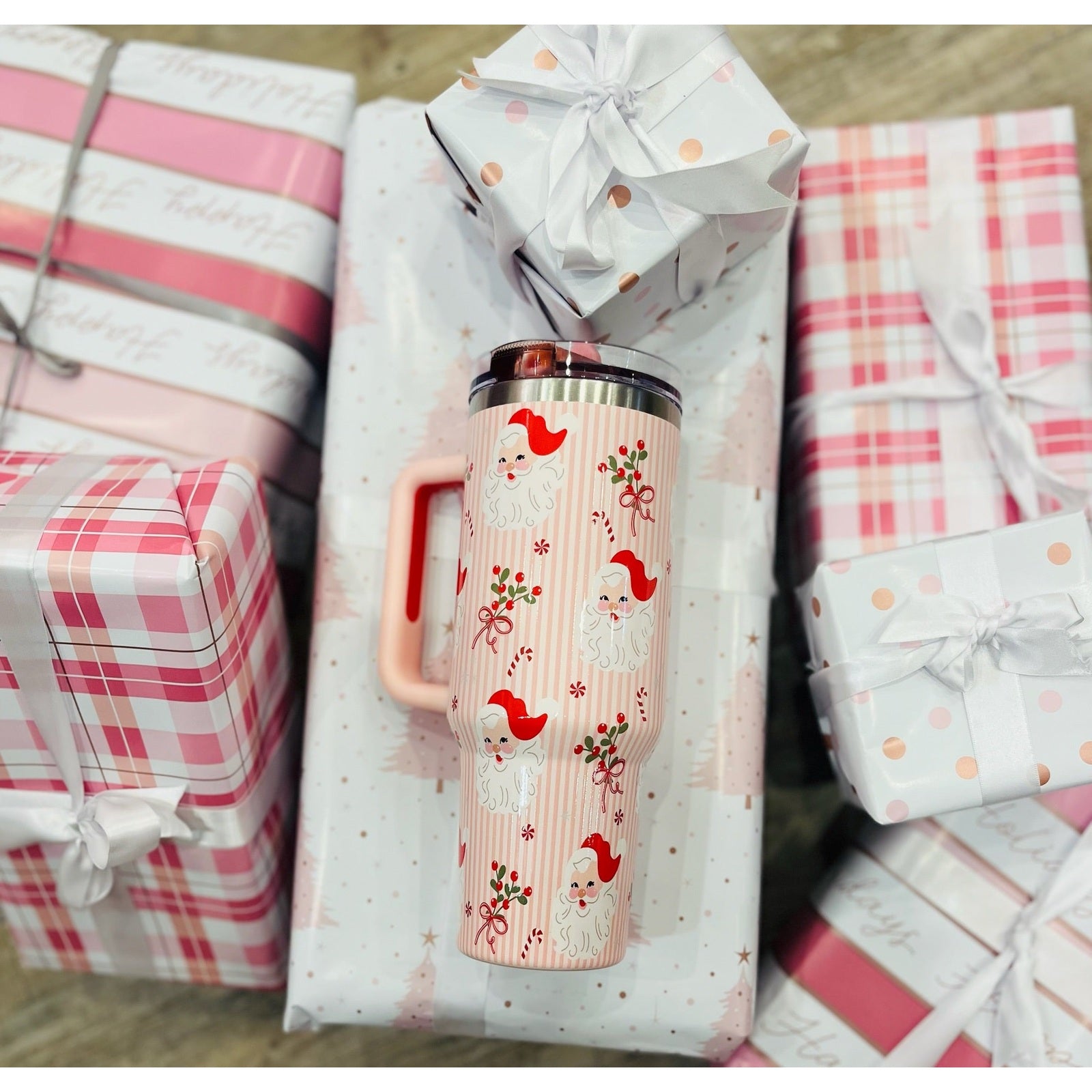 Stay hydrated in style! Our 40oz tumblers keep your drinks ice-cold or piping hot all day long, perfect for busy mornings, errands, or long workdays. Featuring a sturdy handle, spill-resistant lid, and sleek design, it’s the ultimate everyday essential. Available in multiple colors to match your vibe, these tumblers make the cutest gift or treat for yourself! This hot new trendy drinkware style holds up to 40 oz. of your favorite beverage!