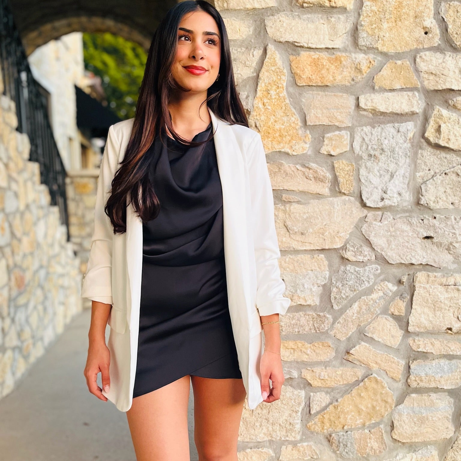 • This dress is the definition of simple sophistication. With its draped bodice, flattering cinched waist, and chic side ruching, this mini dress is made for moments you’ll always remember. From weddings and formal events to sorority functions, date parties, and homecoming, this versatile piece flatters every occasion. The sleeveless silhouette and subtle keyhole detail in the back add just the right touch of elegance, while the fully lined design ensures comfort and confidence all night long. A true timeless staple you’ll reach for again and again.