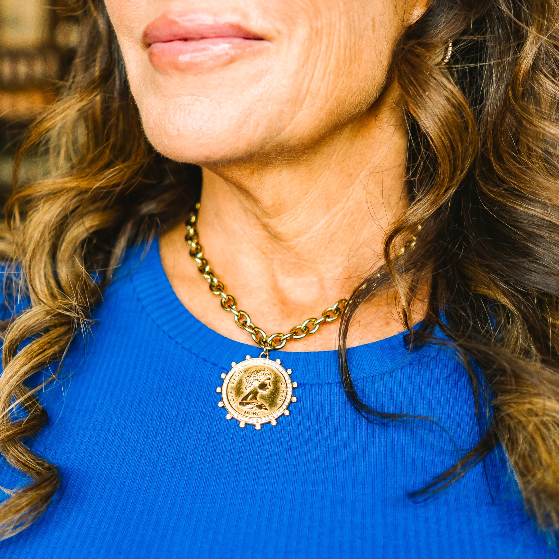 Shine bright with this elevated take on a classic coin necklace. The rhinestone-edged pendant adds just the right amount of sparkle, while the adjustable chain lets you style it as a choker or a longer layering piece. Perfect for everyday wear or dressing up, this water-resistant beauty is a timeless accessory you’ll love reaching for again and again.