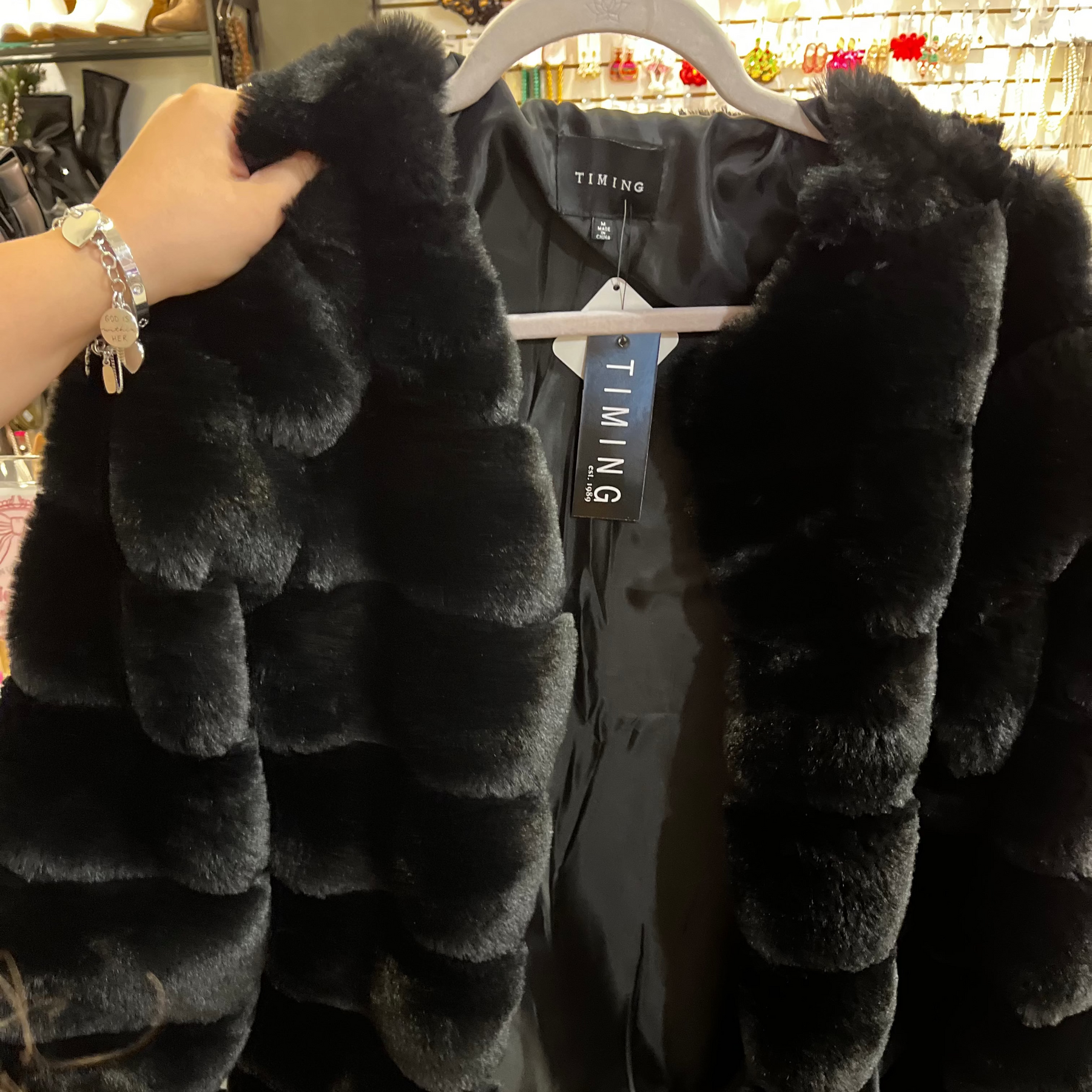 City Lights Black Fur Coat
