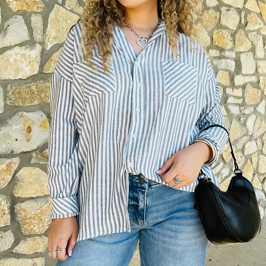The Weekender Striped Button Down Shirt-FINAL SALE