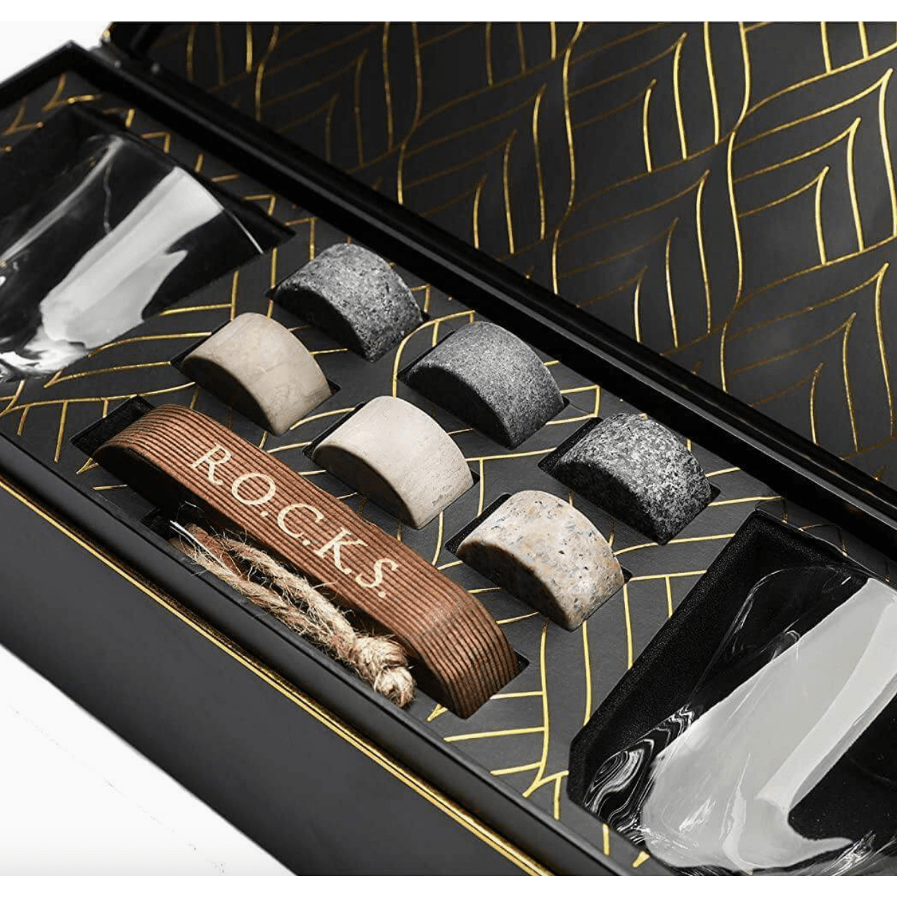 - Calling all whiskey lovers! This gift set is the perfect thing for you and the other whiskey lovers in your life! Enjoy the most perfectly chilled drink courtsey of the reusable stone cubes! Plus comes with 2 stunning whiskey glasses!