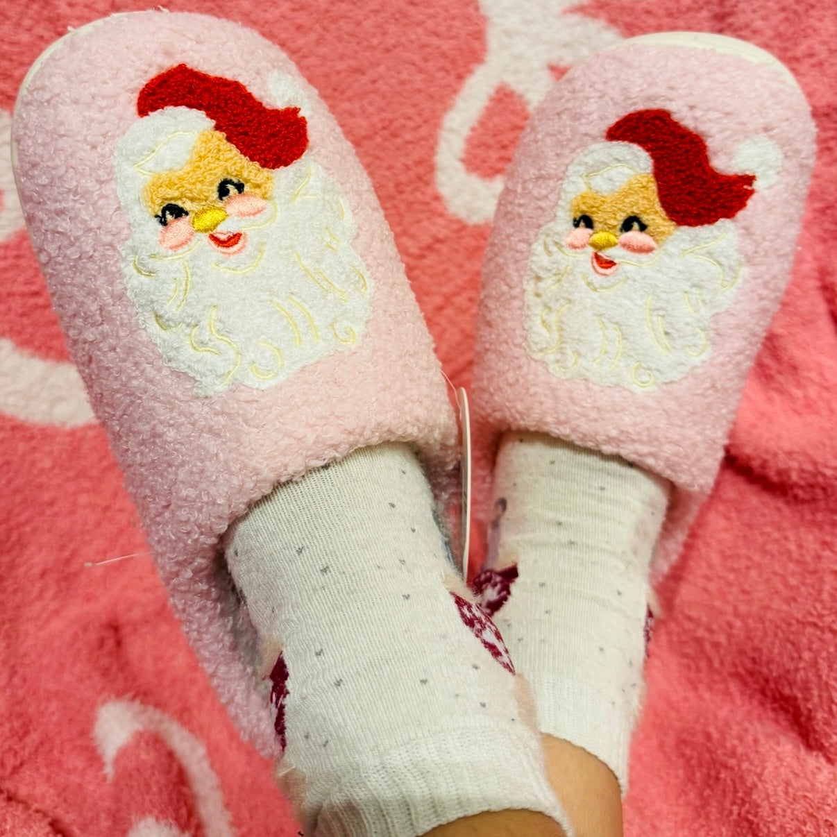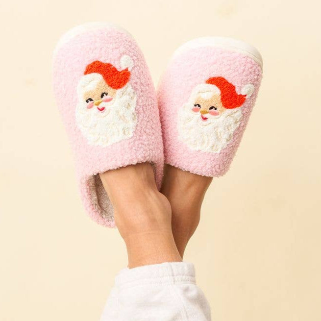 - Get in the holiday spirit from head to toe with these Santa slippers - the coziest way to spread Christmas cheer! Made with soft, fuzzy material and a lightweight feel, they’re perfect for keeping your feet warm while looking absolutely adorable. The hard sole makes them durable enough for light outdoor wear (like grabbing the mail in your PJ’s), while the slip-on style keeps things easy and comfy. Whether gifting to someone special or treating yourself, these festive slippers are a must-have for the season.