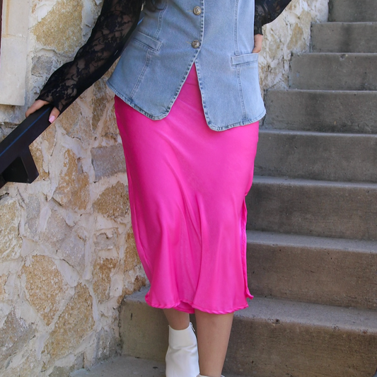 Metallica Front Slit Metallic Midi Denim Skirt-FINAL SALE
