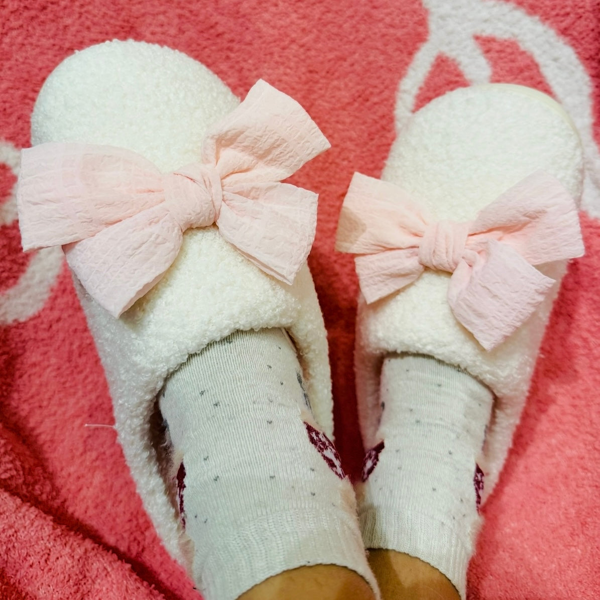 - Slip into all-day coziness with our bow slippers - the ultimate mix of comfort and charm. With their soft, fuzzy feel and playful bow detail, they’re perfect for lounging at home, strolling dorm halls, hotel stays, or quick trips to grab the mail. Lightweight yet durable, they make the sweetest gift for anyone (including yourself!) who loves keeping their feet warm in style