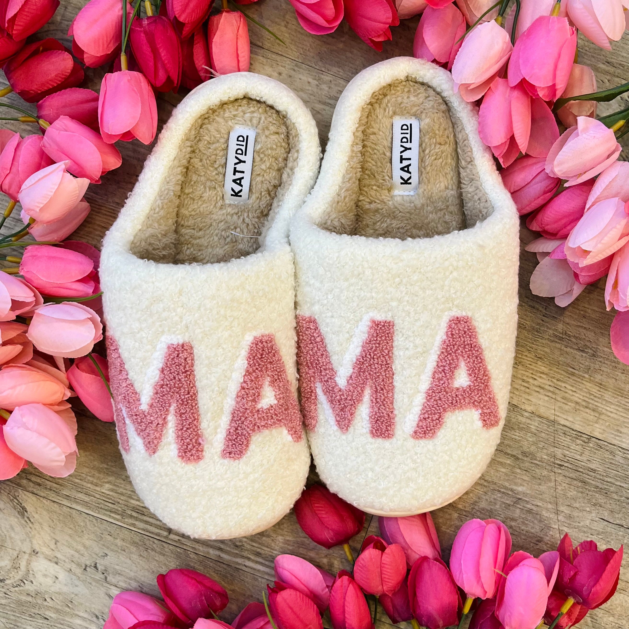 - From the bright pinks that pop on your feet to the fluffy pink and white "MAMA", you will feel confident wearing these perfectly designed slippers throughout their day.