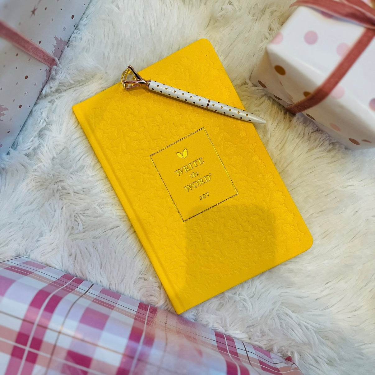 - Yellow textured journal with gold details